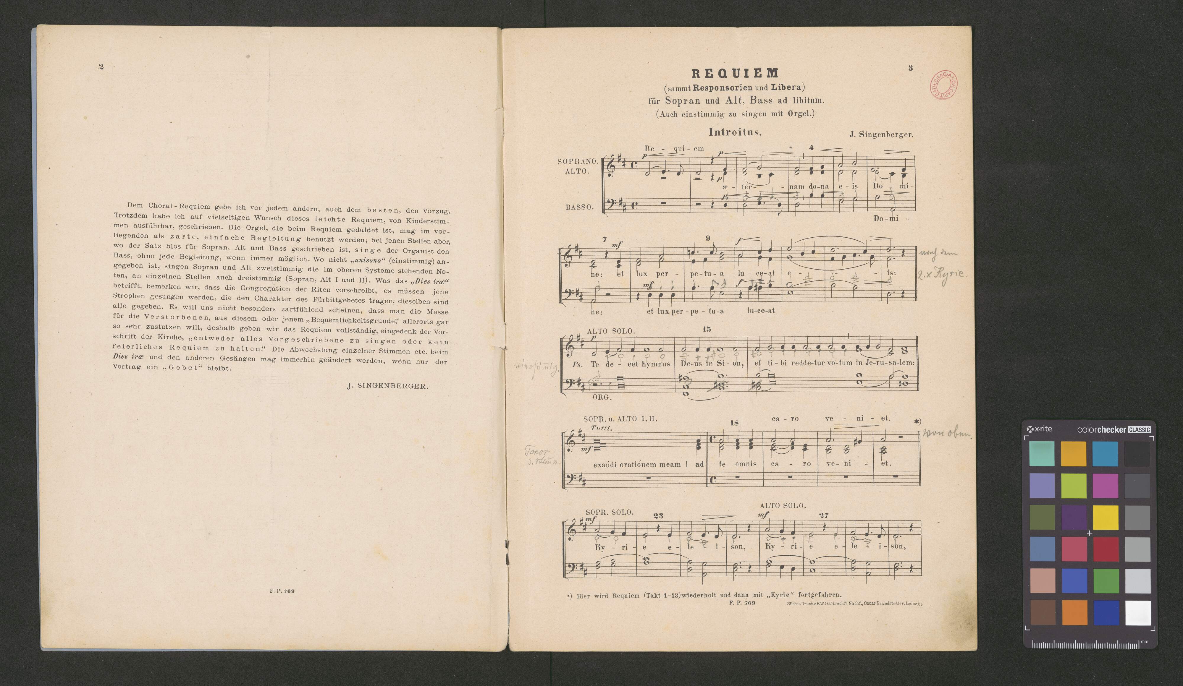 [score, title page:] Requiem | sammt Responsorien und Libera | für | Sopran, Alt, Bass ad libitum, | (oder auch eine Stimme allein) | und | Orgel. | Von | J. Singenberger. | Editio tertia | [...]