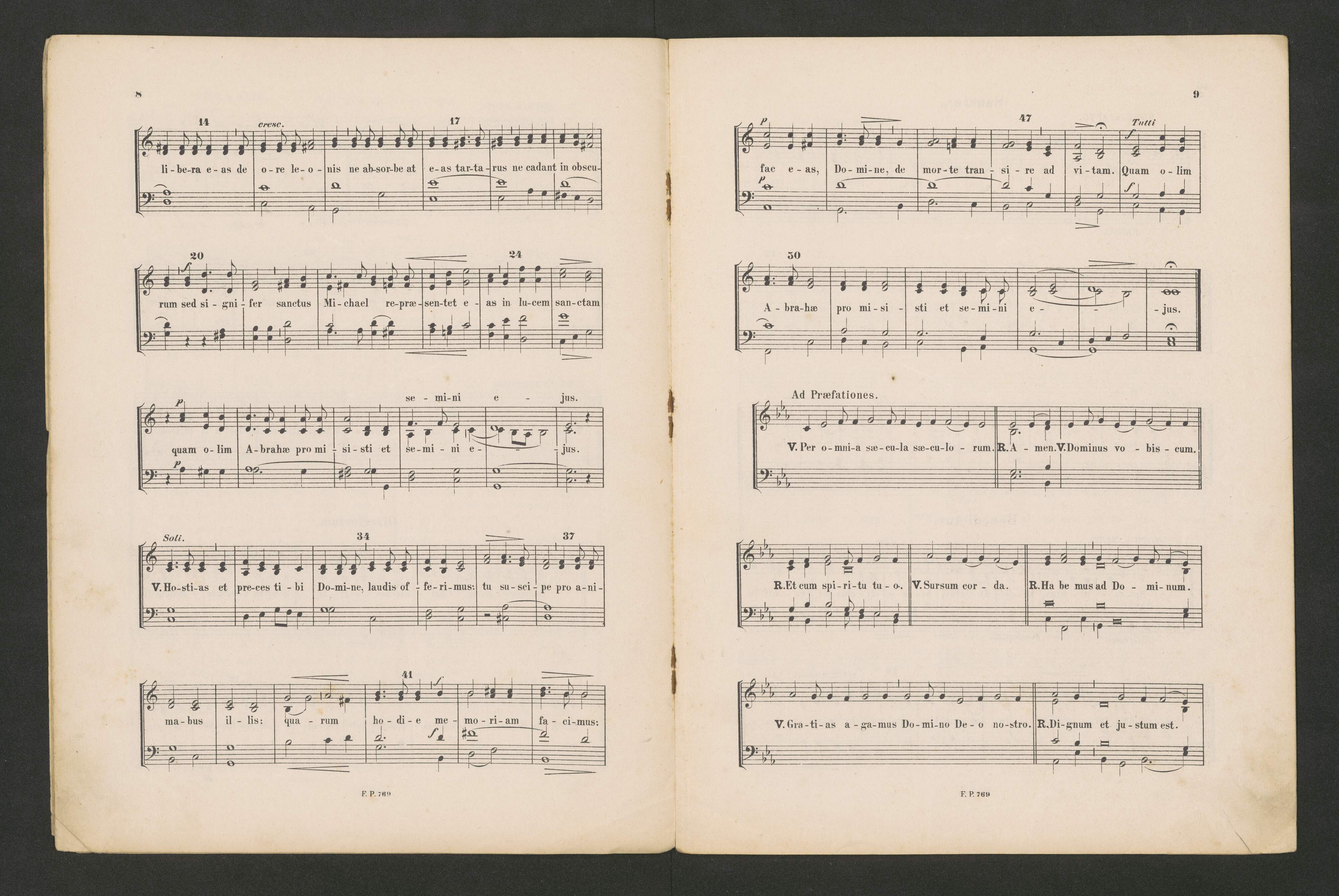 [score, title page:] Requiem | sammt Responsorien und Libera | für | Sopran, Alt, Bass ad libitum, | (oder auch eine Stimme allein) | und | Orgel. | Von | J. Singenberger. | Editio tertia | [...]