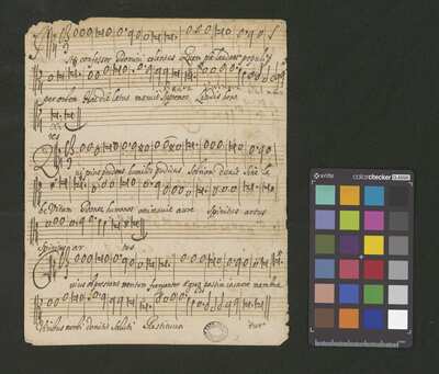 [pl-text: Pieczęć: "CATH. CRAC. * ARCH. CAPIT." na stronach recto wszystkich partii oprócz drugiego egzemplarza partii B i na stronie verso drugiego egzemplarza partii B.], [pl-text: Na pierwszej stronie rękopisu wpisana ołówkiem sygnatura.], [pl-text: Foliacja w źródle naniesiona ołówkiem.], [pl-text: Wszystkie partie oprócz T niepodpisane.]