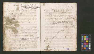 [pl-text: Zbiór podzielony na: "I.) Roraty, II.) Kyrie i Gloria, różne., III.) Sequentia albo Pograduały., IV.) Creda różne., V.) Sanctus i Agnus., VI.) Missa pro defunctis, VII.) Nieszpory., VIII.) Tony Koscielne., IX.) Hymny., X.) Kompleta., XI.) Jutrznia., XII.) Laudes., XIII.) Pieśni."], Collection divided in parts: "I.) Roraty, II.) Kyrie i Gloria, różne., III.) Sequentia albo Pograduały., IV.) Creda różne., V.) Sanctus i Agnus., VI.) Missa pro defunctis, VII.) Nieszpory., VIII.) Tony Koscielne., IX.) Hymny., X.) Kompleta., XI.) Jutrznia., XII.) Laudes., XIII.) Pieśni."], [pl-text: Liczne adnotacje naniesione ołówkiem., Many pencil marksa added.