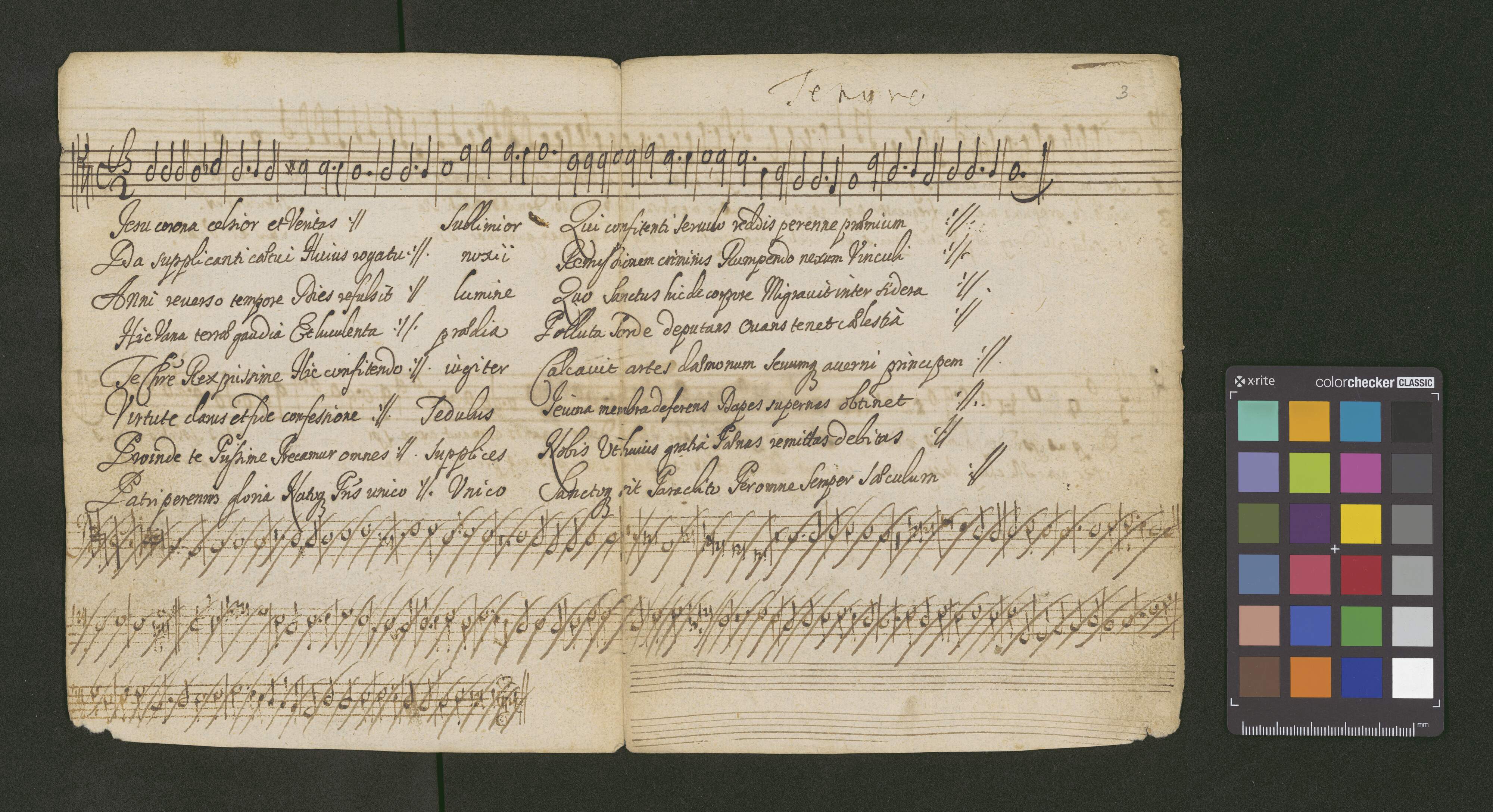 Ex E et C. | De Sacits Confessoribus | H Y M N II Duo. | Iste Confessor Domini | à 4 Voci | Canto. Alto. Tenore Basso. | ad M. D. G. | Pro Capella | Regia E.C.C