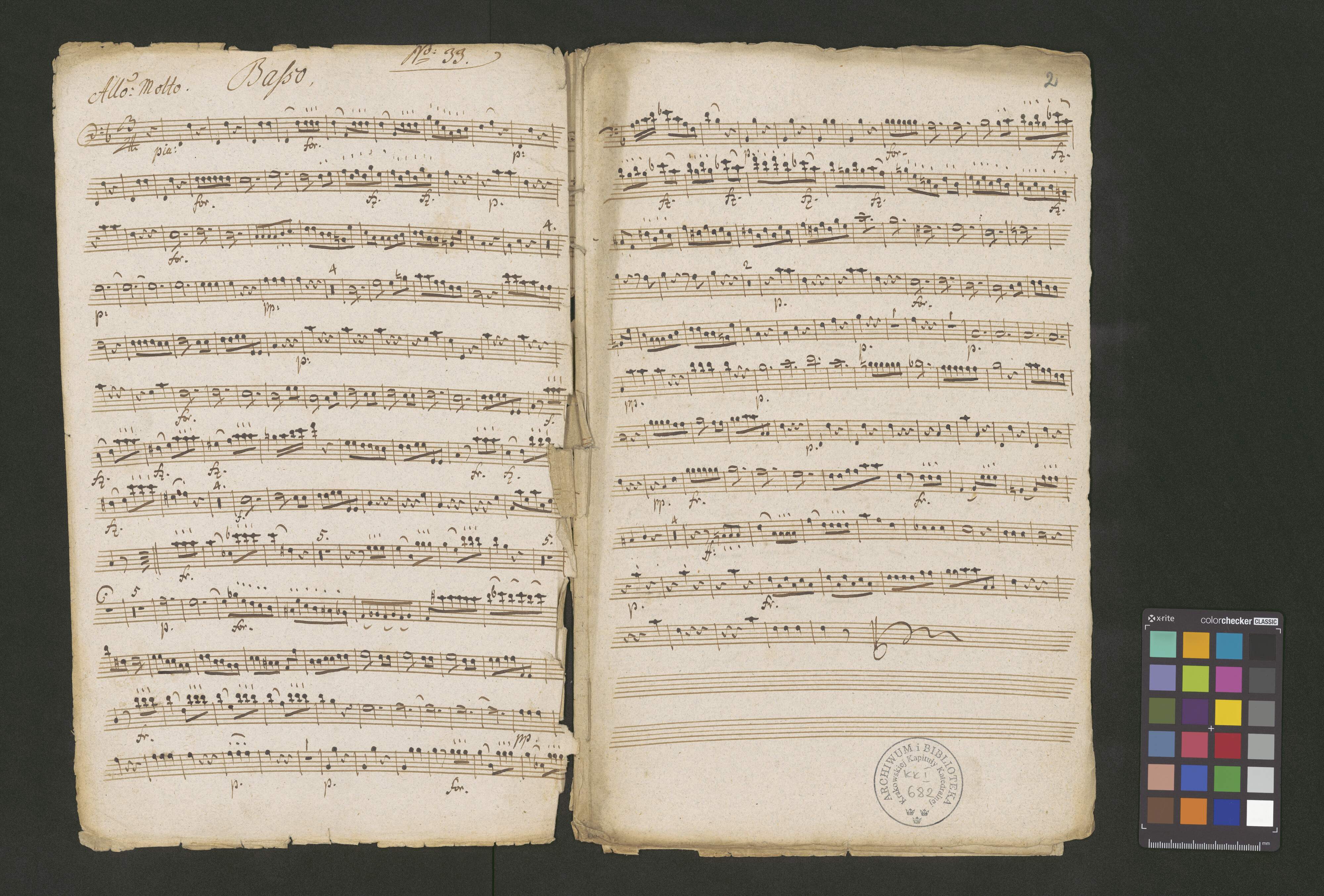 [title page:] No 33. | Sinfonia | Due Violini | Due Oboi | Due Corni | Due Viole | et | Basso | D: S: Pżyb: | Hoffstetter