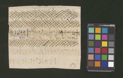 1 scores, [pl-text: na karcie 1v owalna pieczęć: „CATH. CRAC. * ARCH. CAPIT.”], [pl-text: rękopis najprawdopodobniej niepełny - brak co najmniej partii Basso], [pl-text: na karcie 1v zapis obcego materiału nutowego, część skreślona]