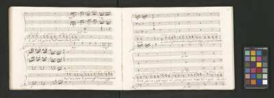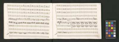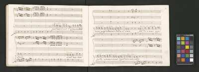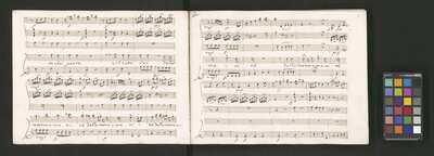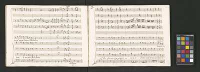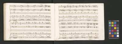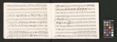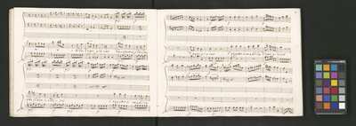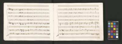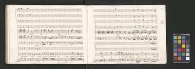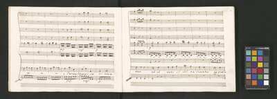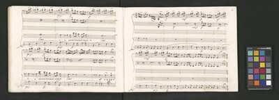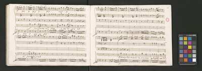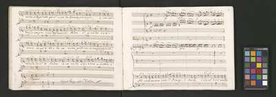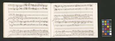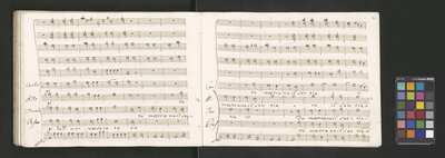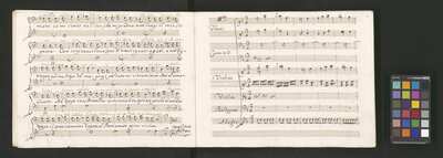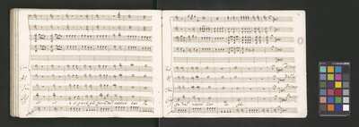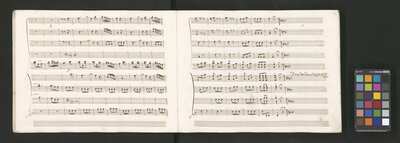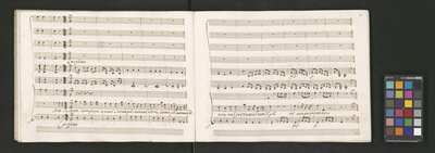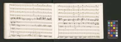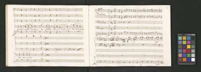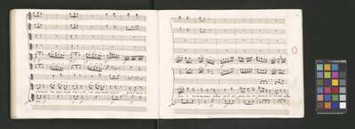 Oratorio in 2 parts, [pl-text: na f recto powtarza się czerwona pieczątka „CATH. CRAC. * ARCH. CAPIT.”], [pl-text: foliacja dopisana ołówkiem], [pl-text: na odwrocie okładki okrągła pieczęć „ARCHIWUM I BIBLIOTEKA”, „Krakowskiej Kapituły Katedralnej” z wpisanym wewnątrz ołówkiem siglum „K.I. | 698”], [pl-text: na karcie tytułowej czarna owalna niezidentyfikowana pieczątka]