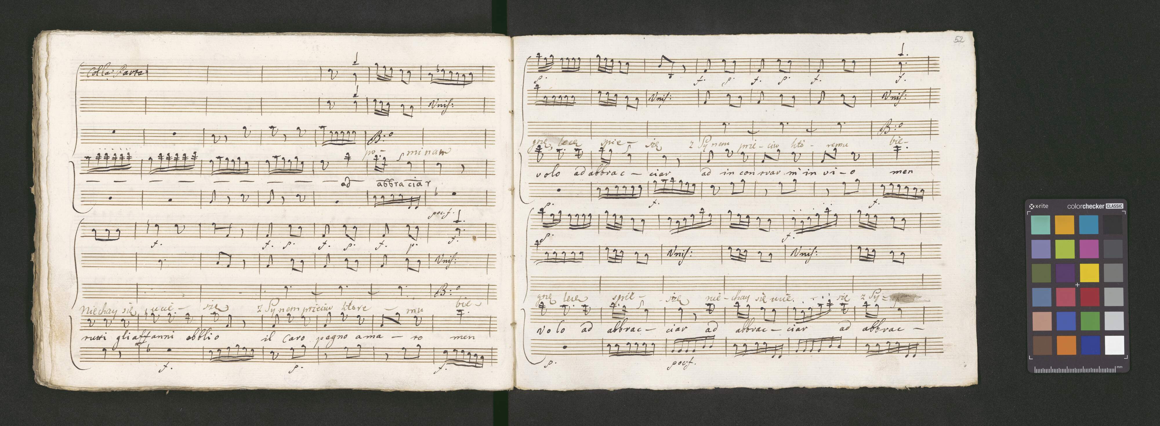 [title page:] 1755 | Oratorium la Pazienza di Tobia | A Quatro Voci con Ciolini e Viola | Dal Sigre Gio Batta Casali | Romano | Maestro di Capella Della Basilica Lateranense | e di S. Maria In Chiesa Nova Academico | // Filharmonico di Bologna