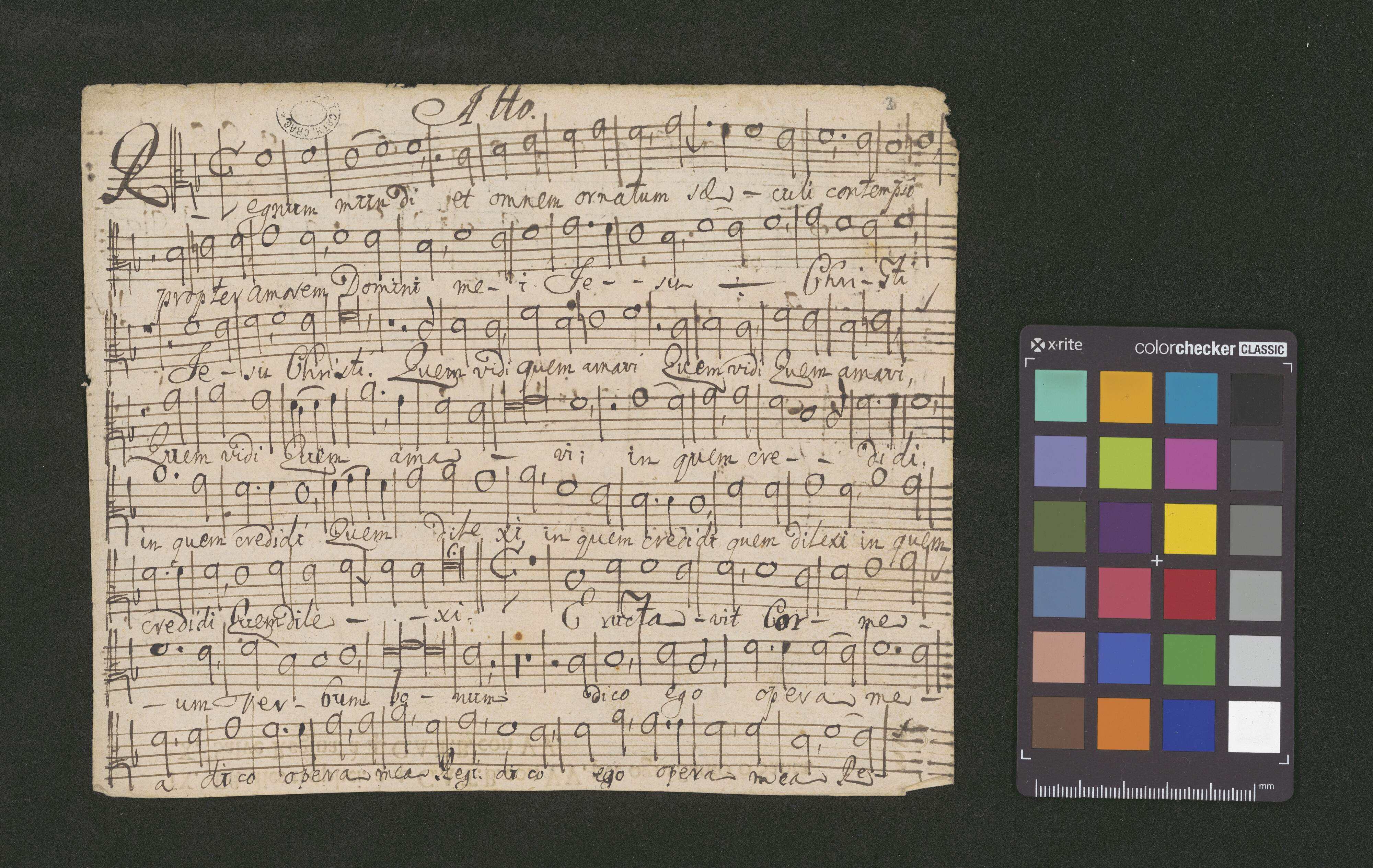 [page title:] De Sanctis Mulieribus | MOTETTUM | a 4 Vocibus | Canto | Alto | Tenore | Basso 2plici | Regnum Mundi | [poniżej, z lewej strony:] O. ad M. D. Gm. [z prawej strony:] Pro Capella Regia | Ecclae Cath. Crac