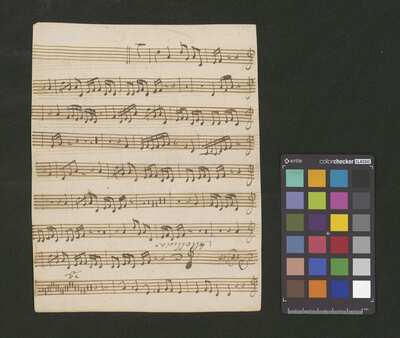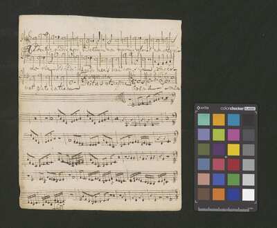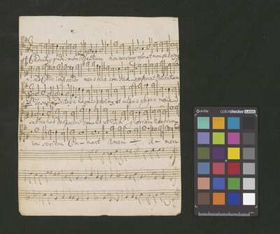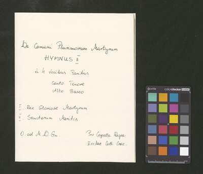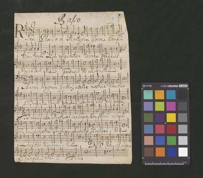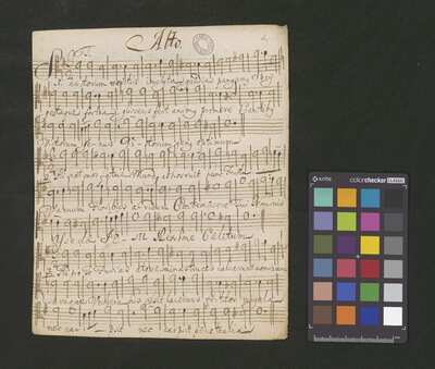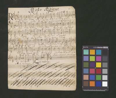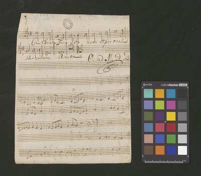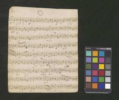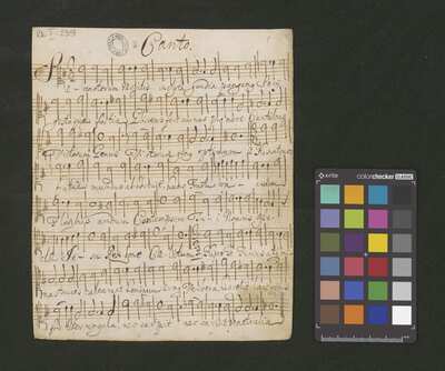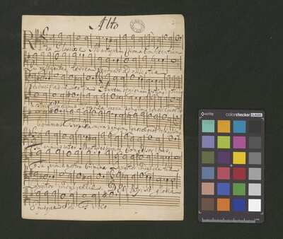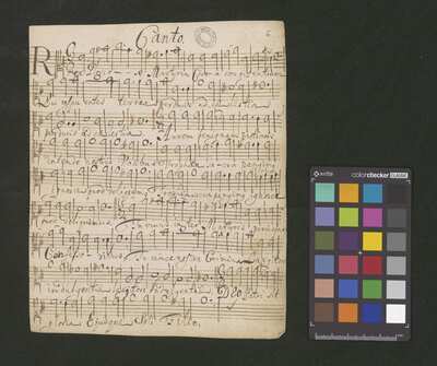 2 scores, [pl-text: na kartach 1r, 2r, 3r, 4r, 5r, 6r, 7r, 8r, 9v, 10v owalna pieczęć: „CATH. CRAC. * ARCH. CAPIT.”], [pl-text: na karcie 1v, 3v, 4v, 5v, 6v, 7v, 8v, 9v, 10v na karcie zanotowane fragmenty jednego lub więcej utworów instrumentalnych; na karcie 2v zanotowany fragment tekstowy]