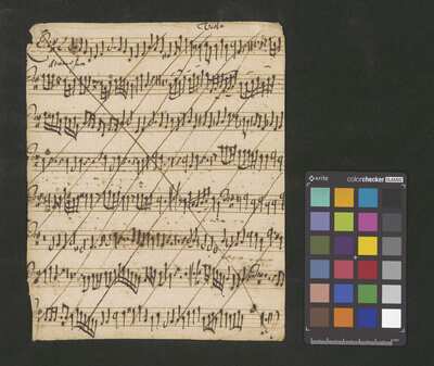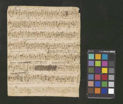 [pl-text: kopistą zasadniczej części rękopisu jest najprawdopodobniej Wincenty Maxylewicz, który utwór Rorate coeli na obsadę SATB zanotował na kartach zawierających fragmenty czterech innych kompozycji], [na kartach 1v, 2r, 3r, 4r, 5r owalna pieczęć: „CATH. CRAC. * ARCH. CAPIT.”], [na kartach 1v i 2v partia puzonu tenorowego i puzonu altowego, pochodzących z anonimowego utworu o nieznanym incipicie]