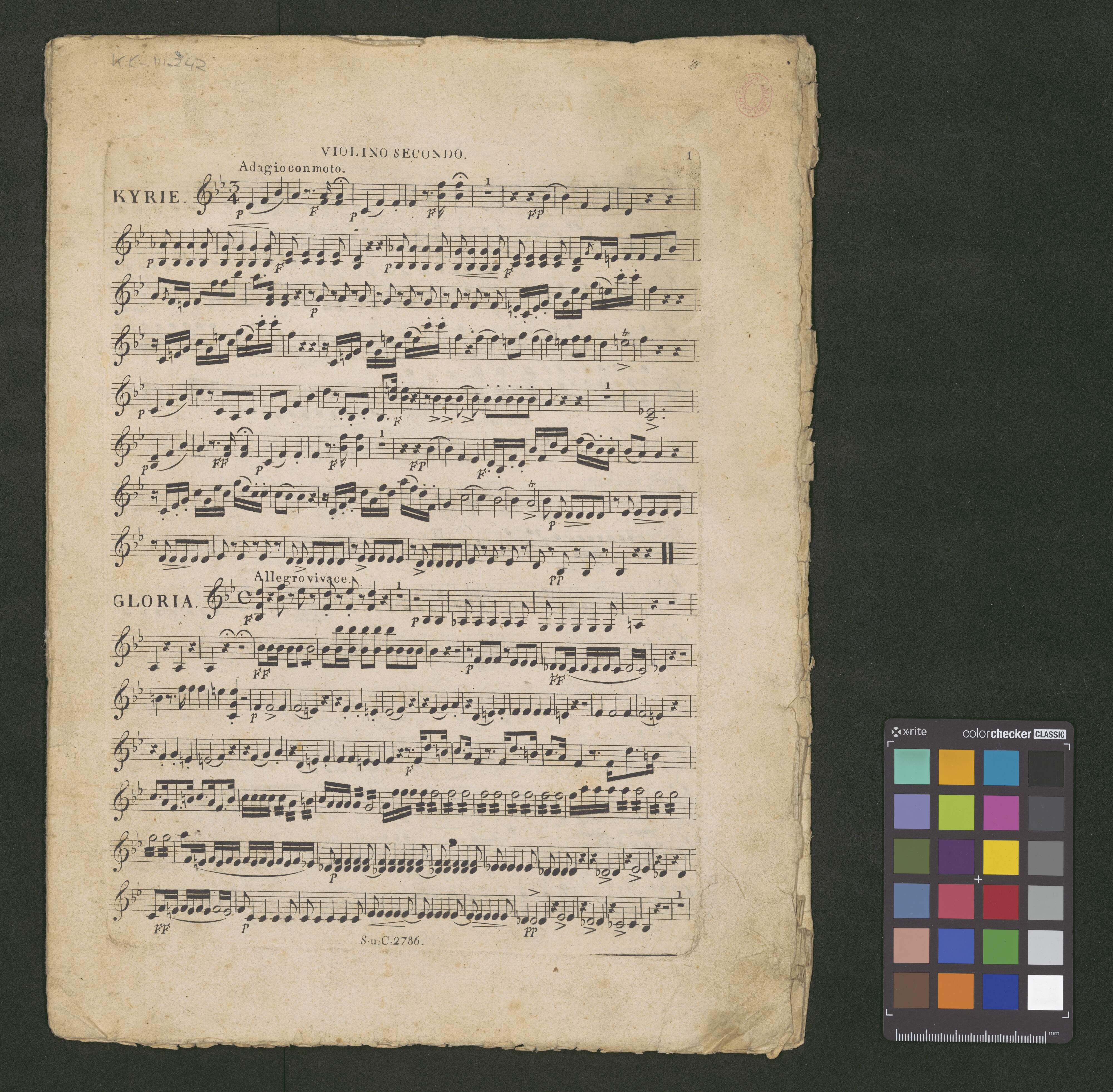 MESSE | nebst | GRADUALE und OFFERTORIUM | für | 4 Singstimen, 2 Violinen, Viola, 2 Clarinetten | Flöte und Fagott ad lib: Trompeten, Pauken | und Orgel | von | J. B. SCHIEDERMAYER, | Dom+Organist in Linz. | 36|t|e|s Werk. | N|o 2786 Sechste Lieferung der Kirchen=Musikalien. Preis | Wien | bei. S. A. Steiner und Comp