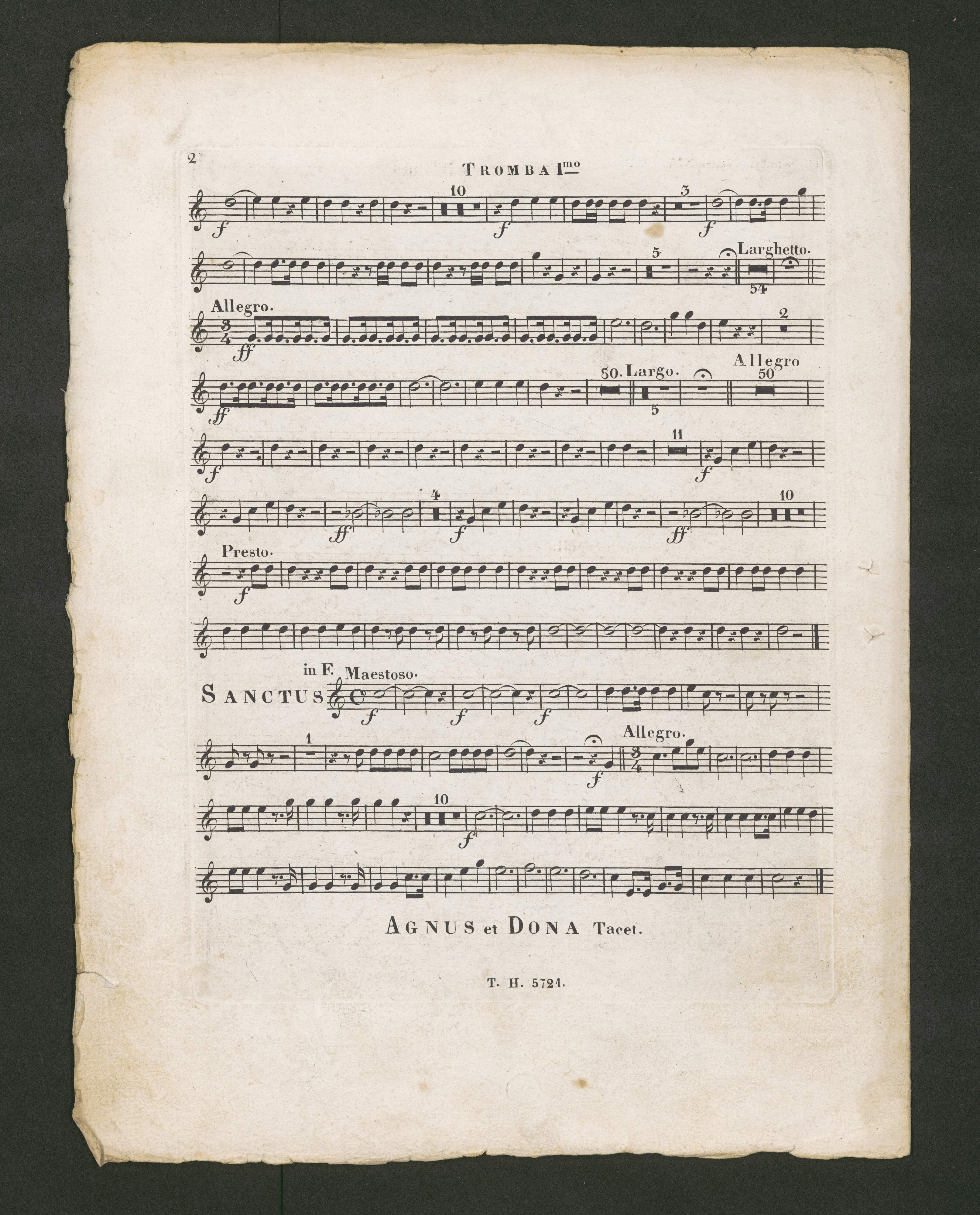 Vierte Messe in C-dur für vier Solo-Singstimmen und Chor, 2 Violinen, Viola, Violoncello und Contrabaß, 2 Flöten, 2 Hoboen, 2 Clarinetten, 2 Fagotte, 2 Hörner, 2 Trompeten und Pauken [Wien, Tobias Haslinger]
