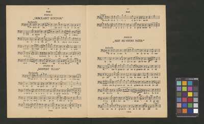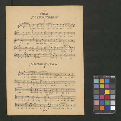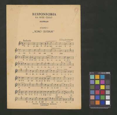 [pl-text: W źródle obecna czerwona owalna pieczęć: „CATH. CRAC. * ARCH. CAPIT.”], Oval red stamp on the source: "CATH. CRAC. * ARCH. CAPIT."., [pl-text: Partia Sopranu zachowana w 5 kopiach, partia Basu zachowana w 4 kopiach.], Soprano and Bass parts in 5 and 4 copies.