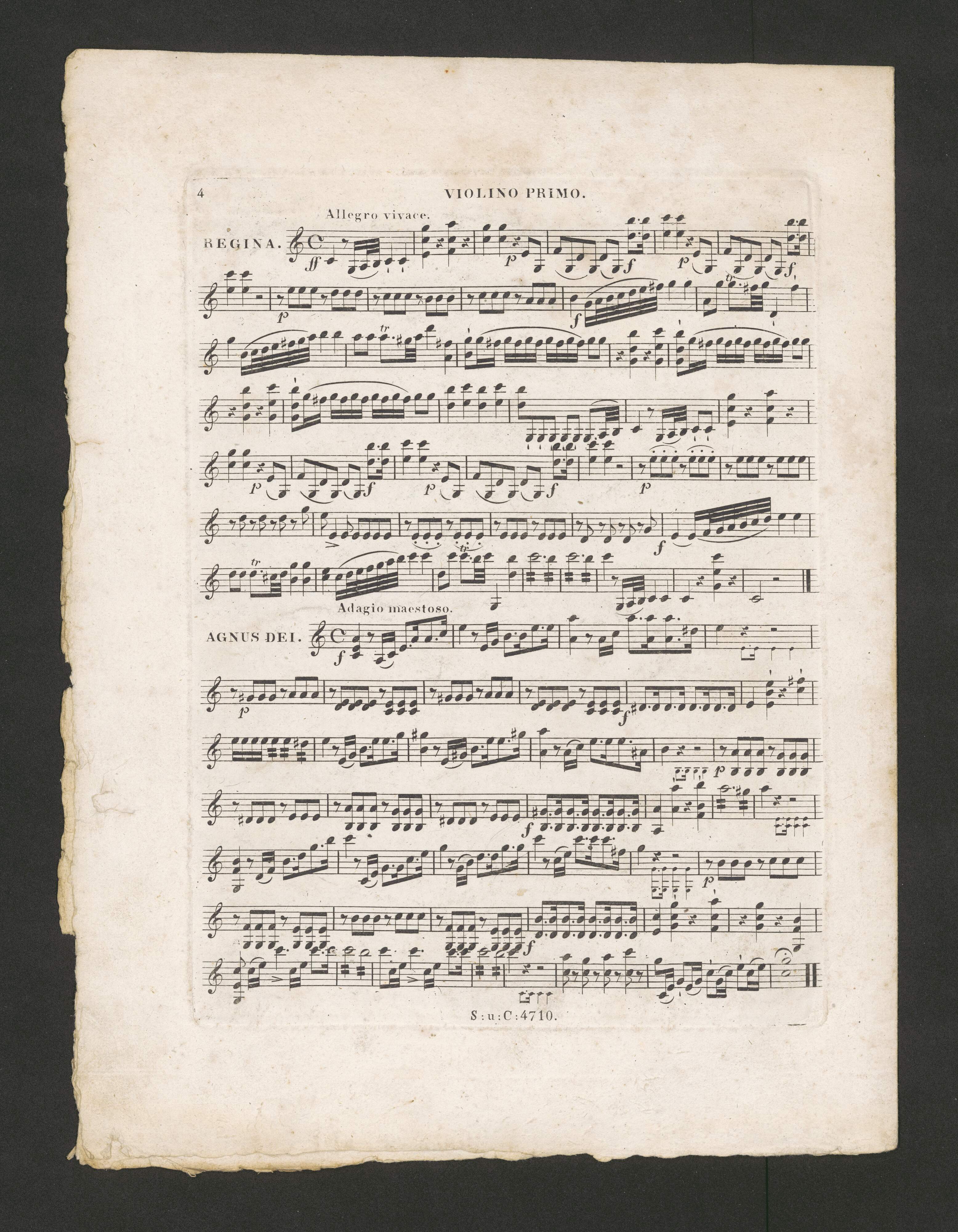 LYTANEY | für 4 Singstimmen | 2 Violinenm 2 Clarinetten, 2 Trompeten, | Pauken, Contrabass und Orgel | von | Joh: Bapt; Schiedermaeyer, | Dom=Organisten in Linz. | 41|t|e|s Werk. | N|o 4710. [space] Sechs und Dreyssigste Lieferung dere Kirchen-musikalien. [space] Pr. 2.30 xC.M. | WIEN, | Eigenthum in Verlag von Tobias Haslinger, Kunst u. Musikalienhändler | am Graben N|o 572. | im Hause deresten oesterr: Sparkasse