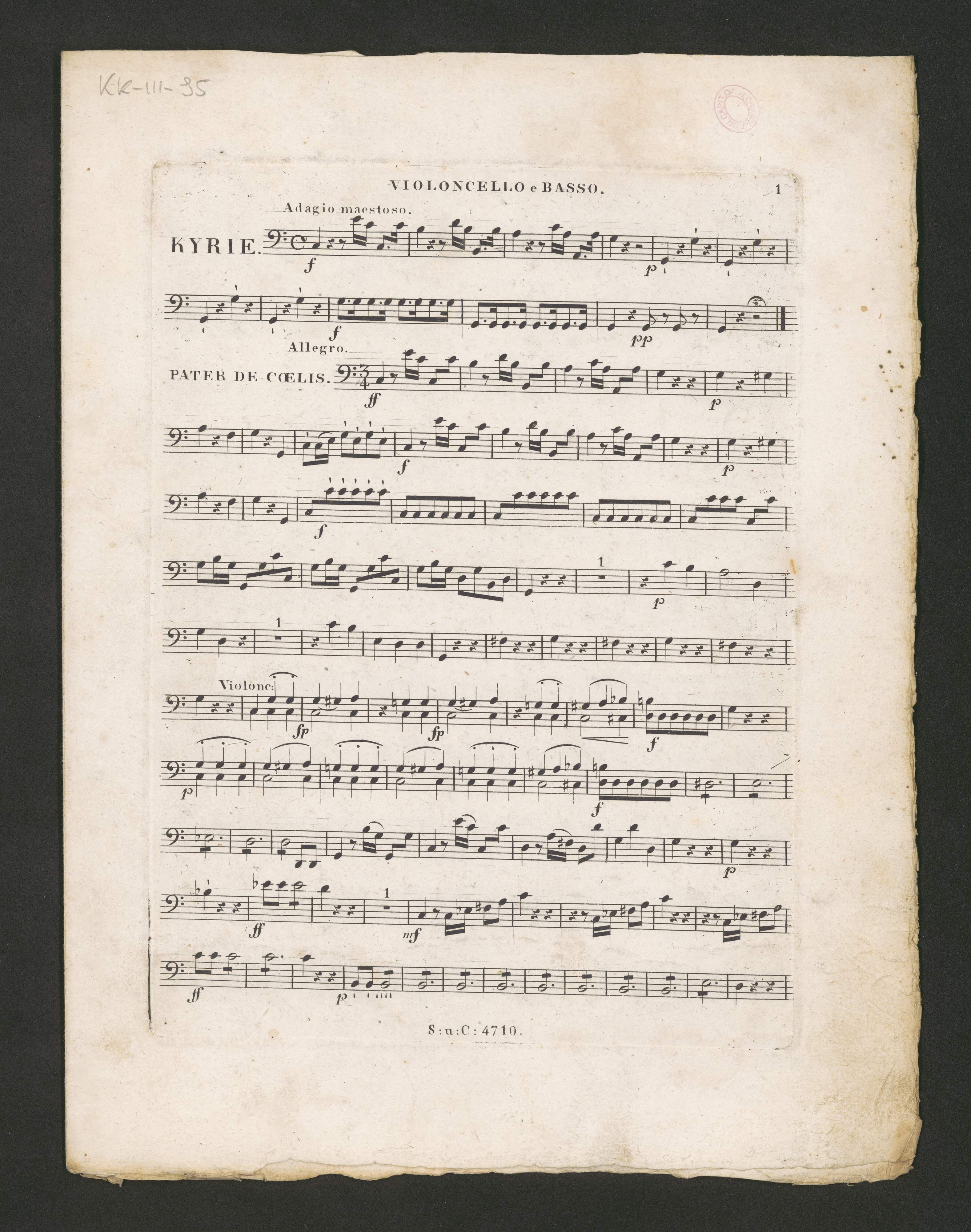 LYTANEY | für 4 Singstimmen | 2 Violinenm 2 Clarinetten, 2 Trompeten, | Pauken, Contrabass und Orgel | von | Joh: Bapt; Schiedermaeyer, | Dom=Organisten in Linz. | 41|t|e|s Werk. | N|o 4710. [space] Sechs und Dreyssigste Lieferung dere Kirchen-musikalien. [space] Pr. 2.30 xC.M. | WIEN, | Eigenthum in Verlag von Tobias Haslinger, Kunst u. Musikalienhändler | am Graben N|o 572. | im Hause deresten oesterr: Sparkasse