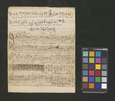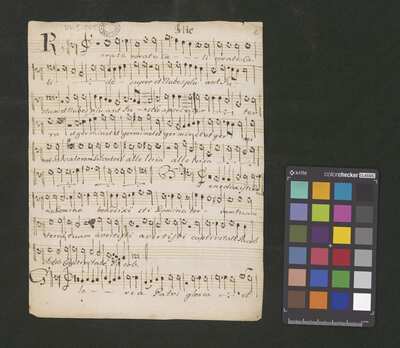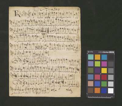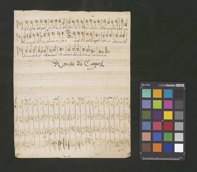[pl-text: skreślenia w partii Basso], [pl-text: pozostałości innego utworu wpisane inną ręką w partii Alto], [pl-text: foliacja dopisana ołówkiem]