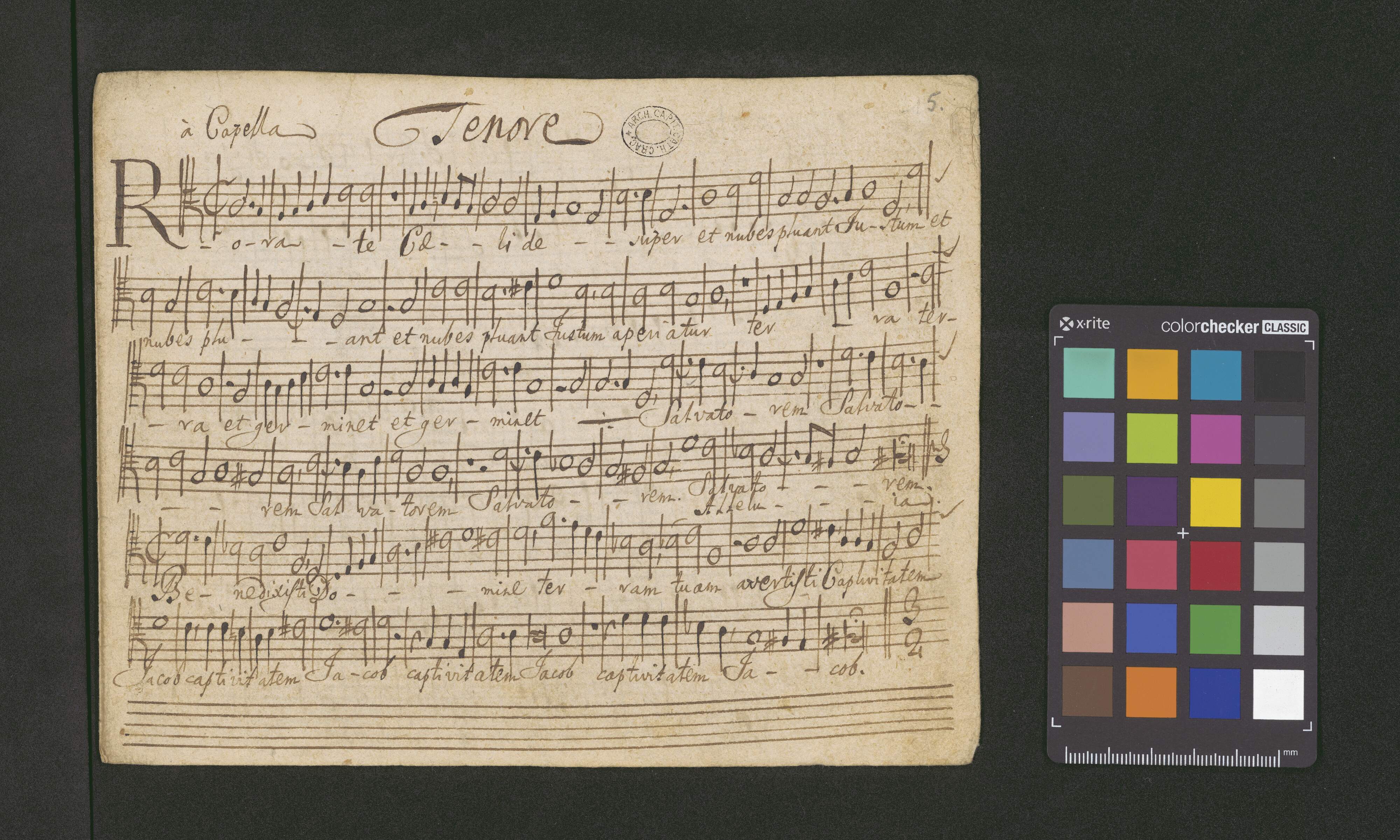 [on the B part:] Rorate Cali un Grad usq ad Punificatione | et un Allel post Nativit a 4 Voci C.A.T.B Opus [unreadable]