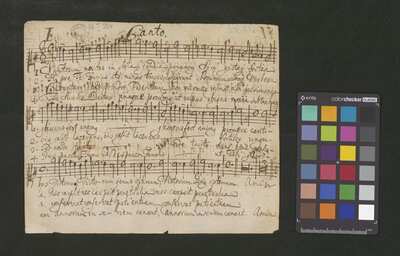 [pl-text: Pieczęć: „CATH. CRAC. * ARCH. CAPIT.” umieszczone na stronach recto wszystkich kart.], [pl-text: Karta tytułowa dodana współcześnie.], [pl-text: Foliacja w źródle naniesiona ołówkiem. Dodana do głosu Basso ripieno mniejsza luźna kartka (z zapisem końcówki utworu) oznaczona jako f. 5a.], [pl-text: Na f. 1r naniesiona ołówkiem sygnatura.], [pl-text: Po lewej stronie numeru "1" na pierwszej karcie widoczny zapis ołówkiem "ch. 24 (ujęte w kwadratową ramkę, również zapisaną ołówkiem).], [pl-text: Partia B rip spisana na innym papierze, prawdopodobnie dodana później. Na stronie verso f. 5 widoczny zapis tekstem ciągłym w języku polskim. Na odwrocie dodanej do partii mniejszej karty fragment zapisu nutowego innej kompozycji.], [pl-text: W partii B rip zapis tylko pierwszej kompozycji.]