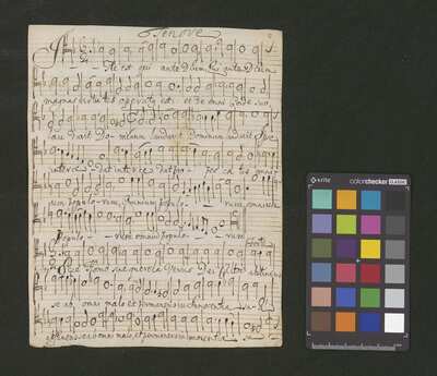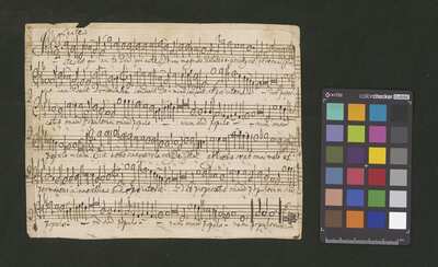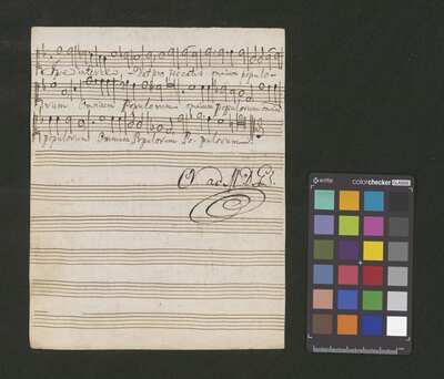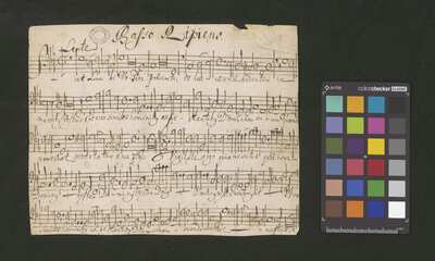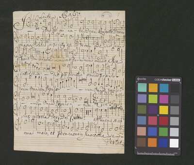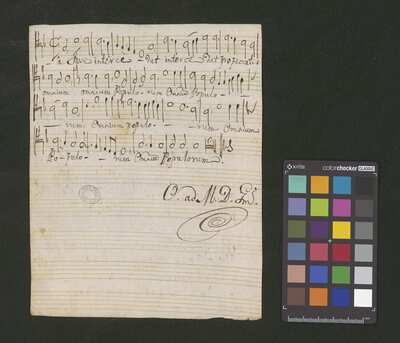 [pl-text: Pieczęć: „CATH. CRAC. * ARCH. CAPIT.” umieszczona na wszystkich kartach na stronach recto (na f. 8 wyjątkowo na stronie verso).], [pl-text: Foliacja w źródle naniesiona ołówkiem.], [pl-text: Karta tytułowa dodana współcześnie.], [pl-text: Na f. 1r naniesiona ołówkiem sygnatura w lewym górnym rogu.], [pl-text: Druga partia B nzawana "Basso ripieno." posiada ten sam materiał muzyczny.], [pl-text: Drugi utwór z kolekcji ("Iste est qui ante Deum") zapisany pierwotnie tuż pod utworem pierwszym, jednak we wszystkich partiach poza B rip jest on zakreślony atramentem. Drugi utwór spisany na oddzielnych kartach.], [pl-text: Utwór "Iste est qui ante Deum" z głosu B rip naklejony na odwrocie f. 5.]