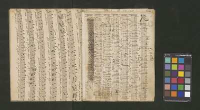 1 score, [pl-text: na kartach 1r, 2r, 3r, 4r, 6r owalna pieczęć: „CATH. CRAC. * ARCH. CAPIT.”], [pl-text: na wewnętrznej stronie obwoluty okrągła pieczęć: „ARCHIWUM I BIBLIOTEKA * Krakowskiej Kapituły Katedralnej”], [pl-text: na karcie 1, której recto stanowi kartę tytułową wyklejka - fragmenty obcego utworu. Wyklejką jest także karta 7]