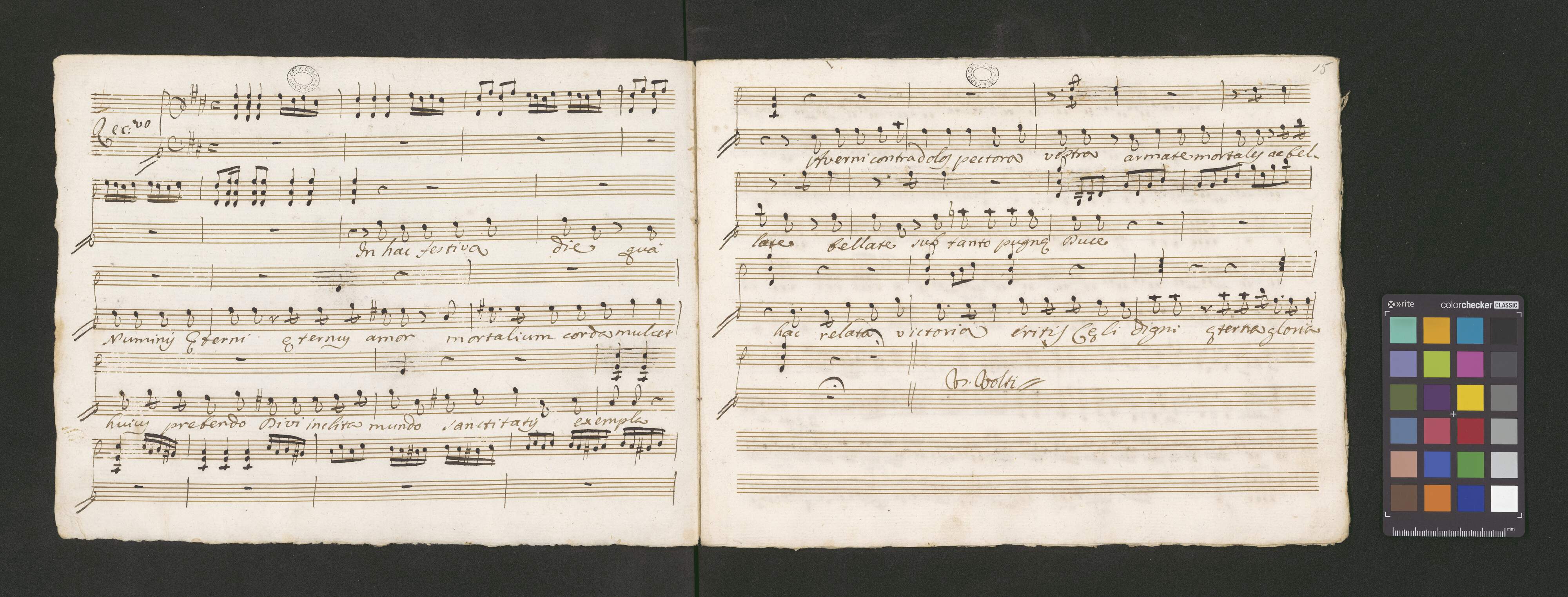 [page title:] In hac festiva die | Motetto a voce Sola di Basso | Del Sig. Gio: Batta: Casali