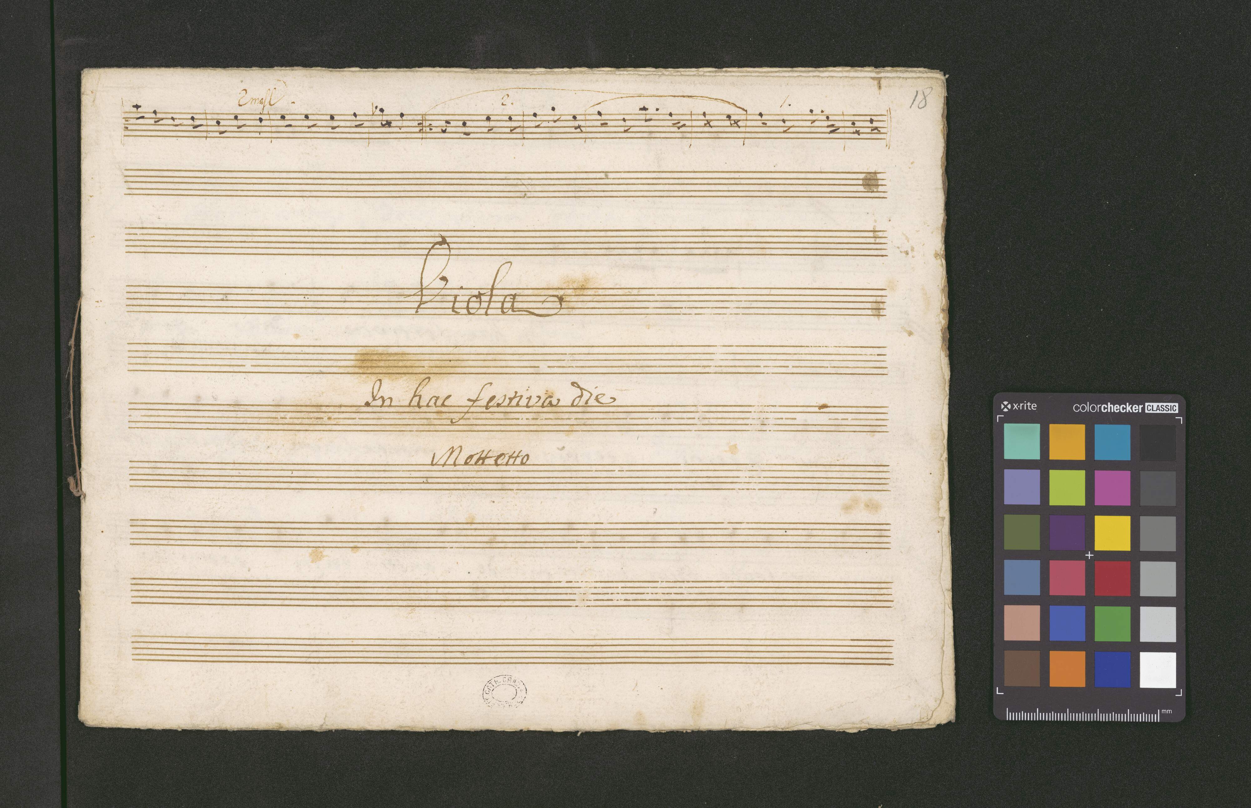[page title:] In hac festiva die | Motetto a voce Sola di Basso | Del Sig. Gio: Batta: Casali