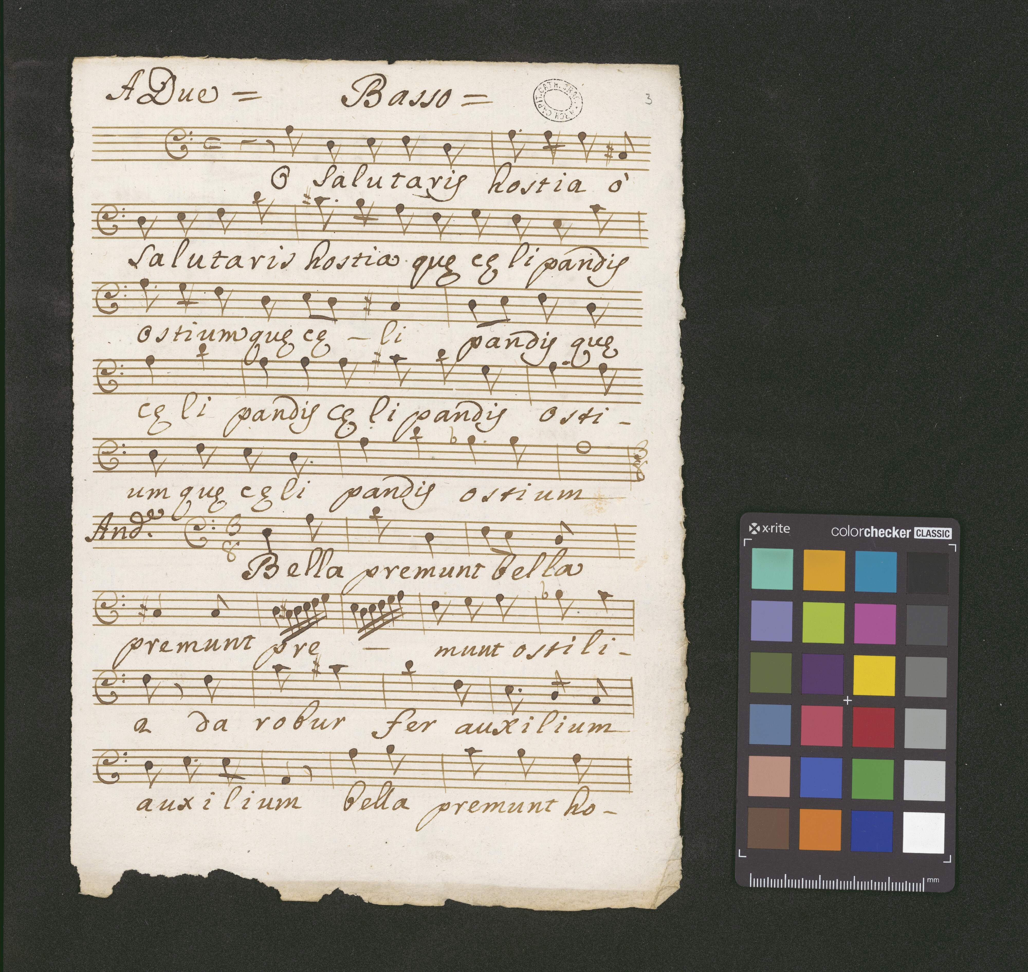 [page title:] Organo | O salutaris hostia | A Duo | Alto, e Basso | Del Sig. Gio: Battista Casali