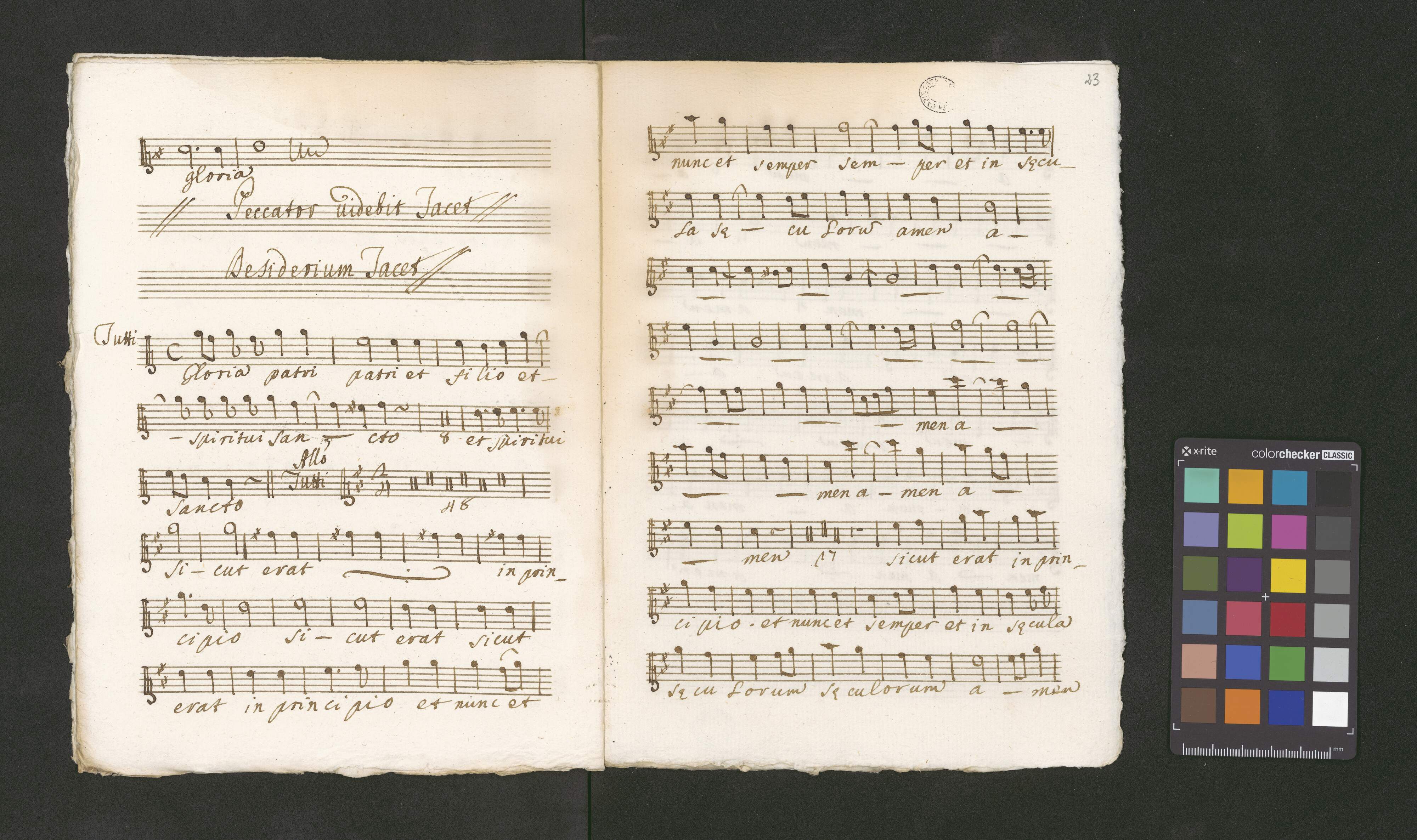 [page title:] [w prawym górnym rogu, przekreślone:] 555 | Beatus vir à [?] | Canto, Alto con Ripieno | Organo | Del Sign. [?] Batta Constanzi