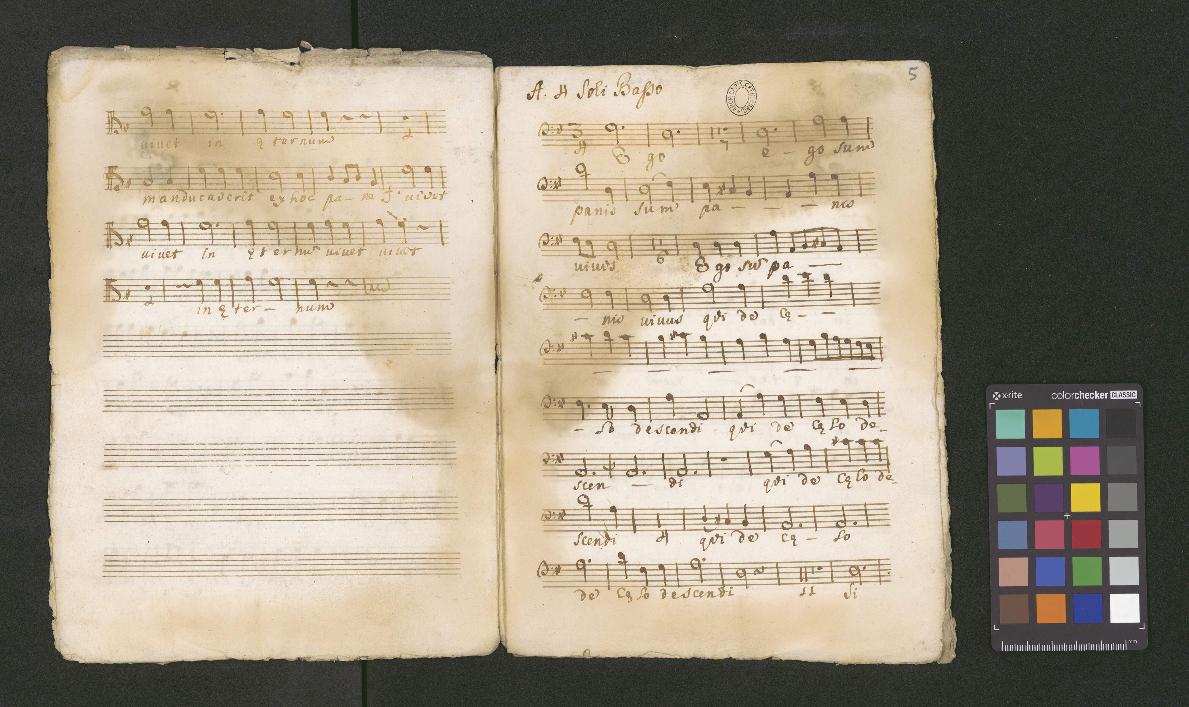 [title page:] Ego sum panis vivus | Motteto DS: Elavazione | a 4 voci | Organo | Delsig Gio: Batt'a Costanzi