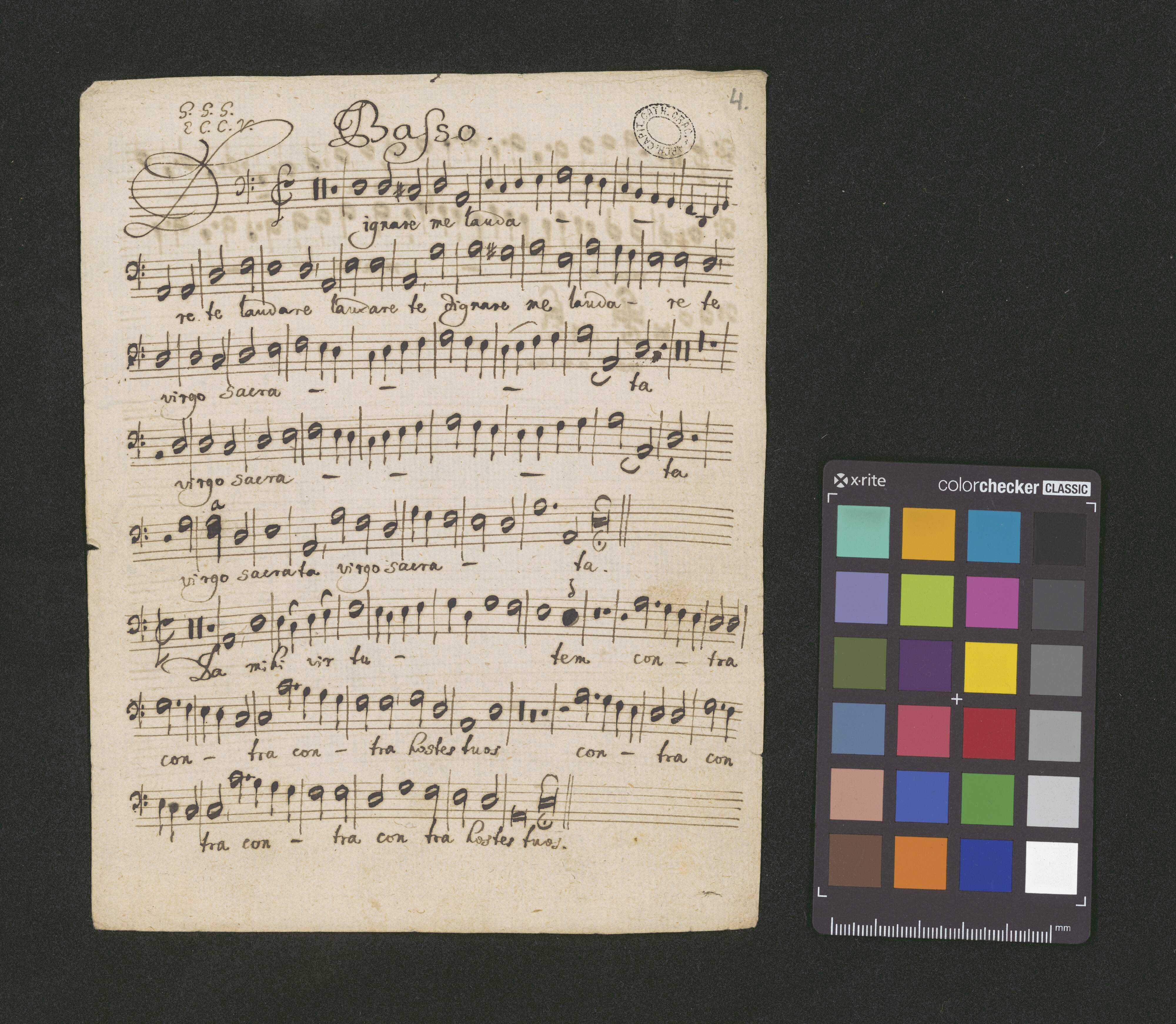 [caption title:] Dignare me laudare Te Virgo sacrata auth. [?] GGG a 4 voci