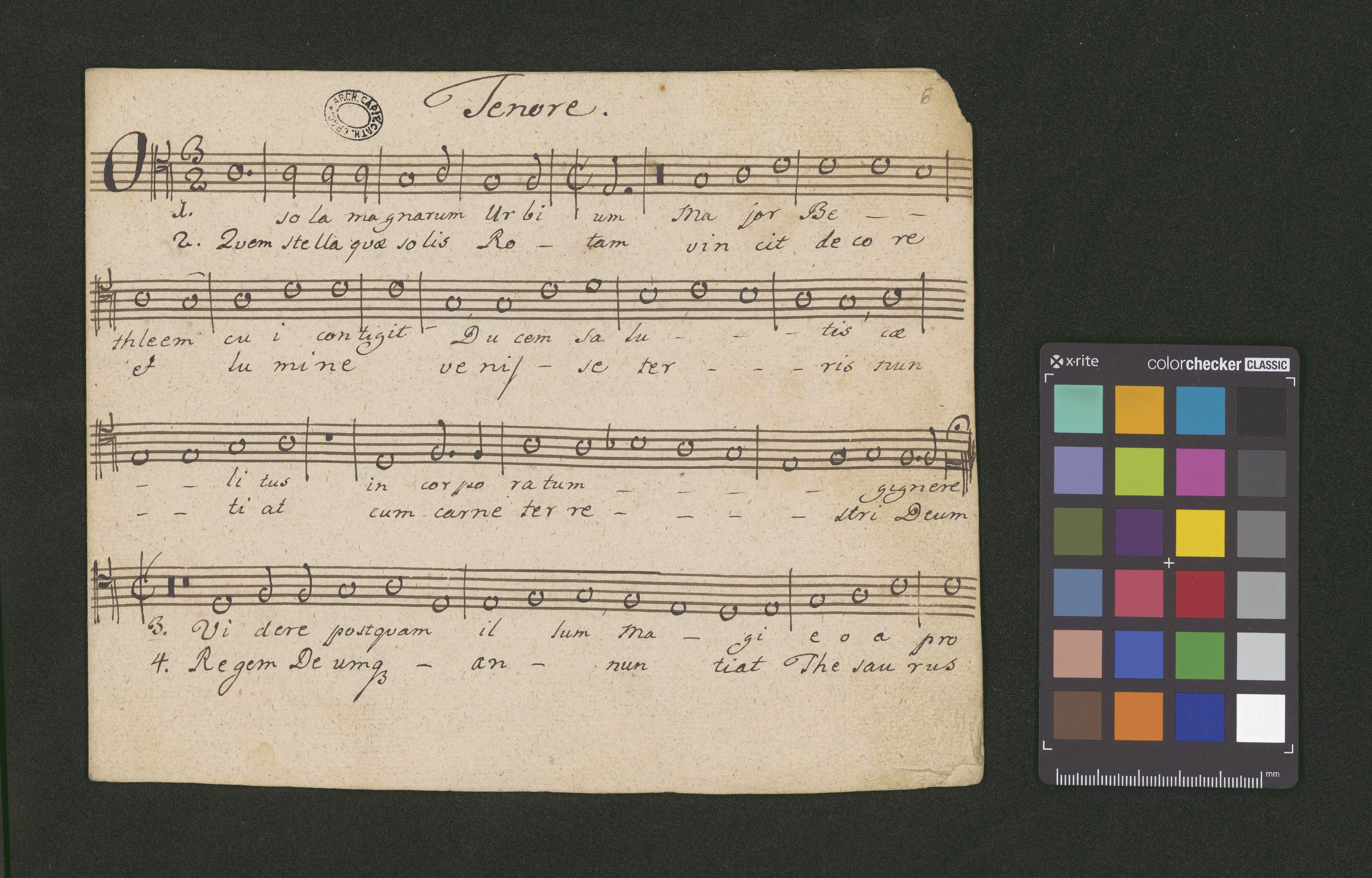 [page title:] [w prawym górnym rogu:] ex A [kasownik] | [centralnie:] Hymnus | O sola magnarum | a 4 voci. | [poniżej, w prawym dolnym rogu:] Auth. G.G. Gorczycki