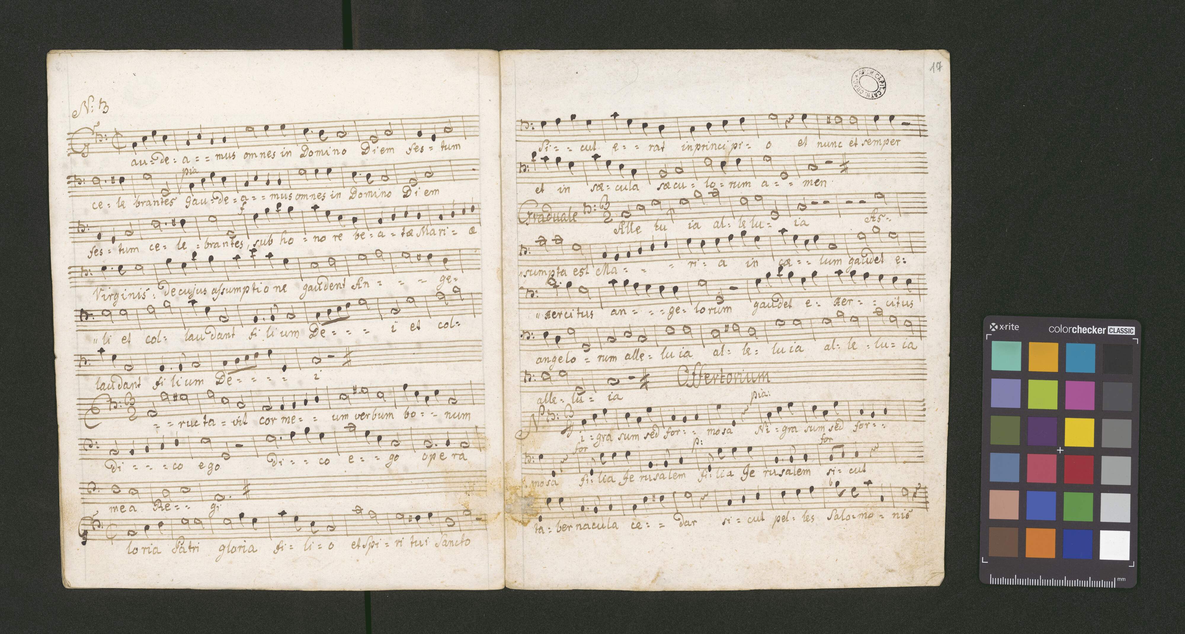 [caption title:] Canto; [text incipits:] Gaudeamus, Alleluia assumpta est Maria, Surge propera, Gaudeamus, Propter veritatem, Quae est ista, Gaudeamus omnes, Alleluia assumpta est, Nigra sum