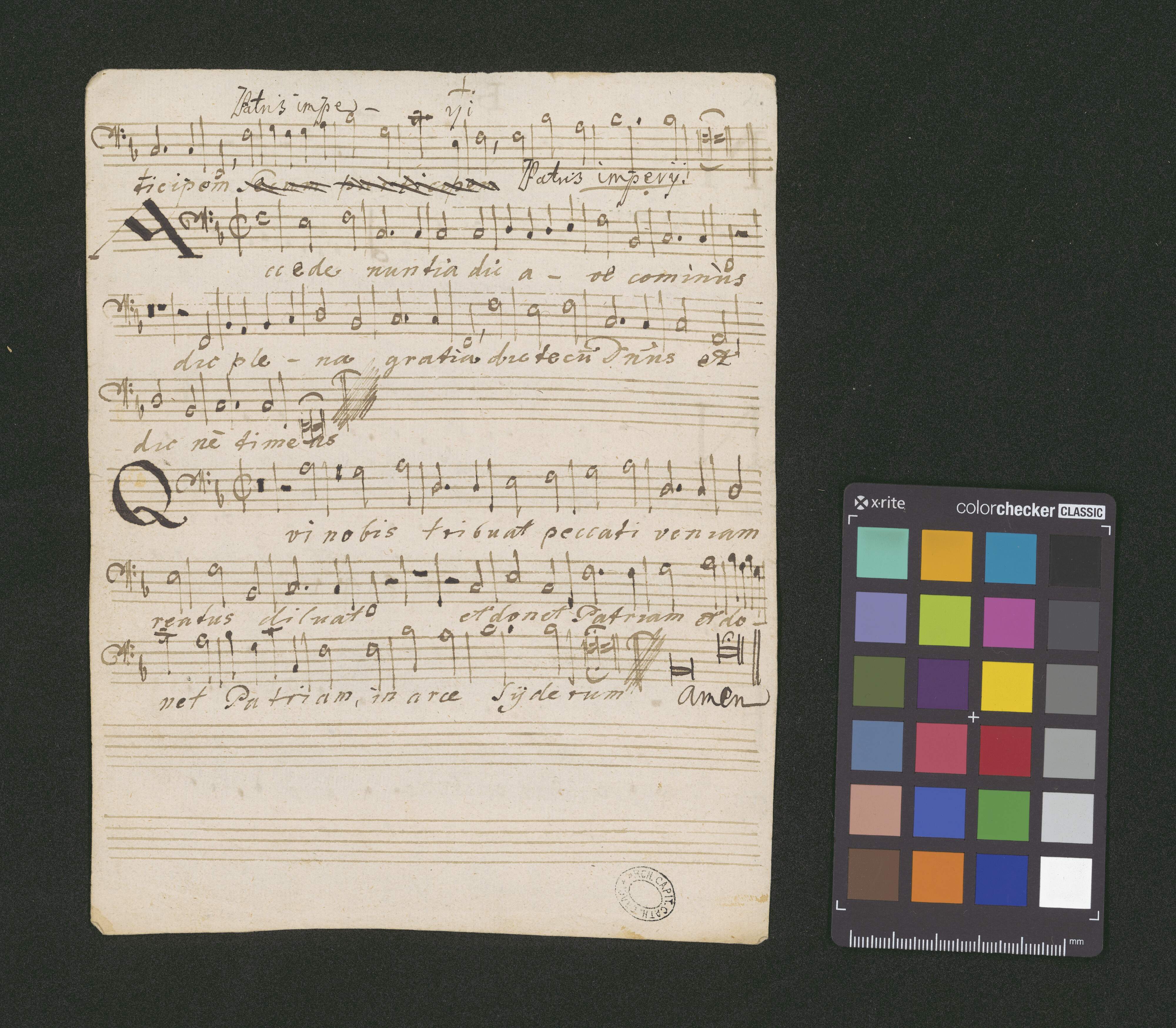[title page:] Prosa In Adventu | Mittit ad Virginem | a4 C.A.T.B. | viola basso | cum | organo | A. F. Leichleitner | Ex Musicalibus | Andreae Thadaei | Nawrat
