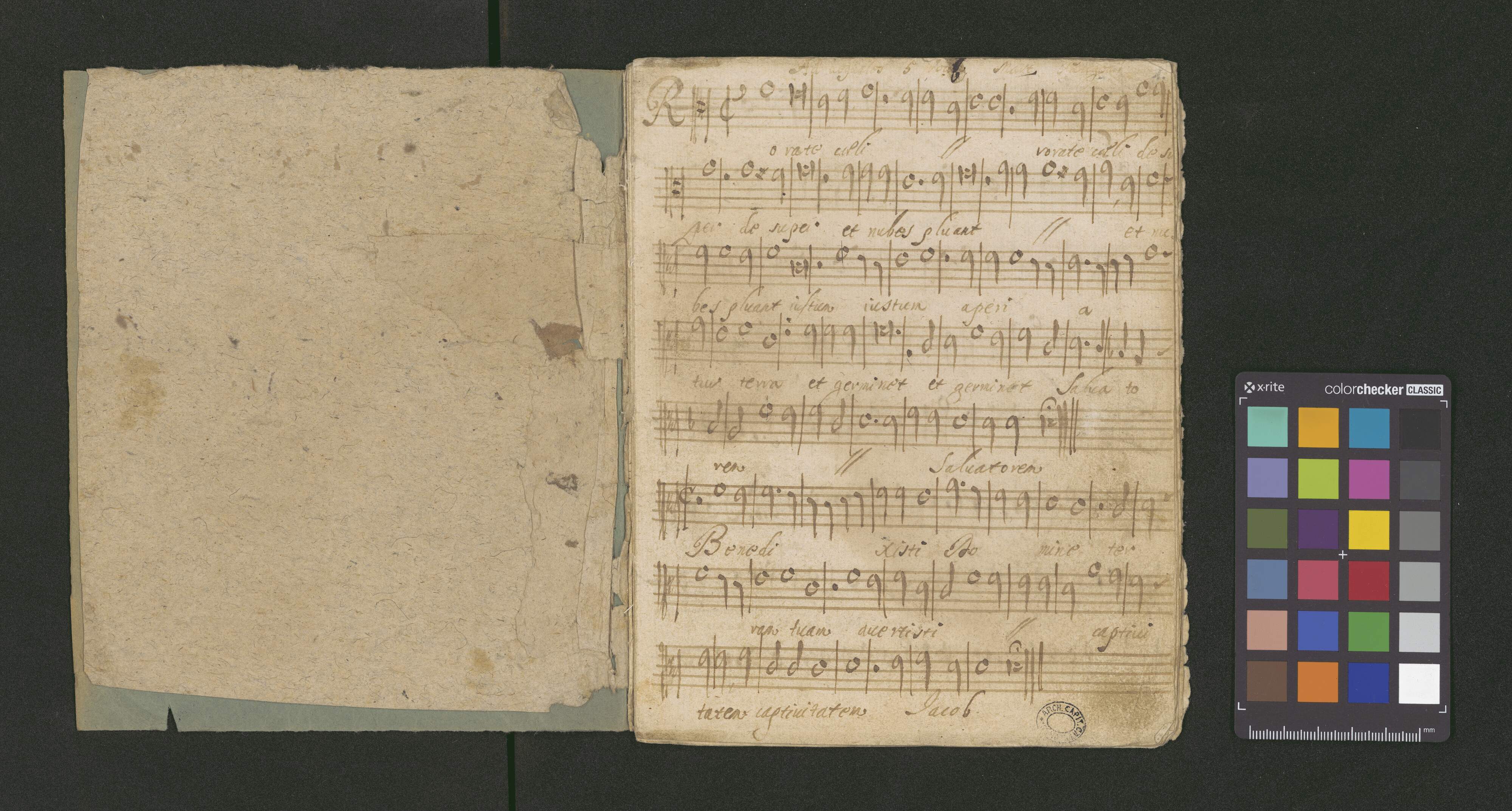 [page title:] [?] | Rorate à 5. Voci [?] | Quonam Rex. | Sanguine proprio | Per merita S. Adalberti | à 5 Vici | Paligom
