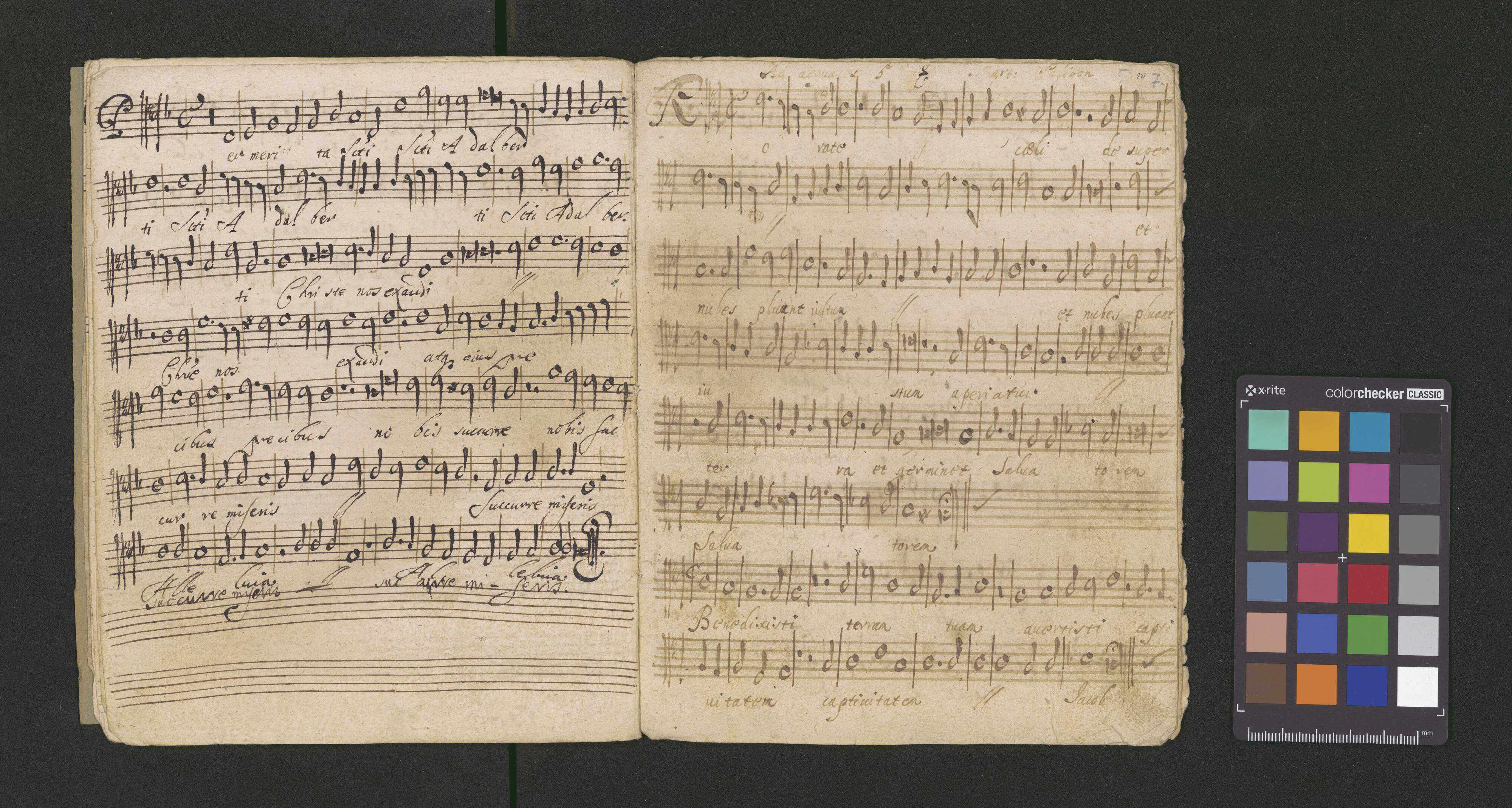 [page title:] [?] | Rorate à 5. Voci [?] | Quonam Rex. | Sanguine proprio | Per merita S. Adalberti | à 5 Vici | Paligom