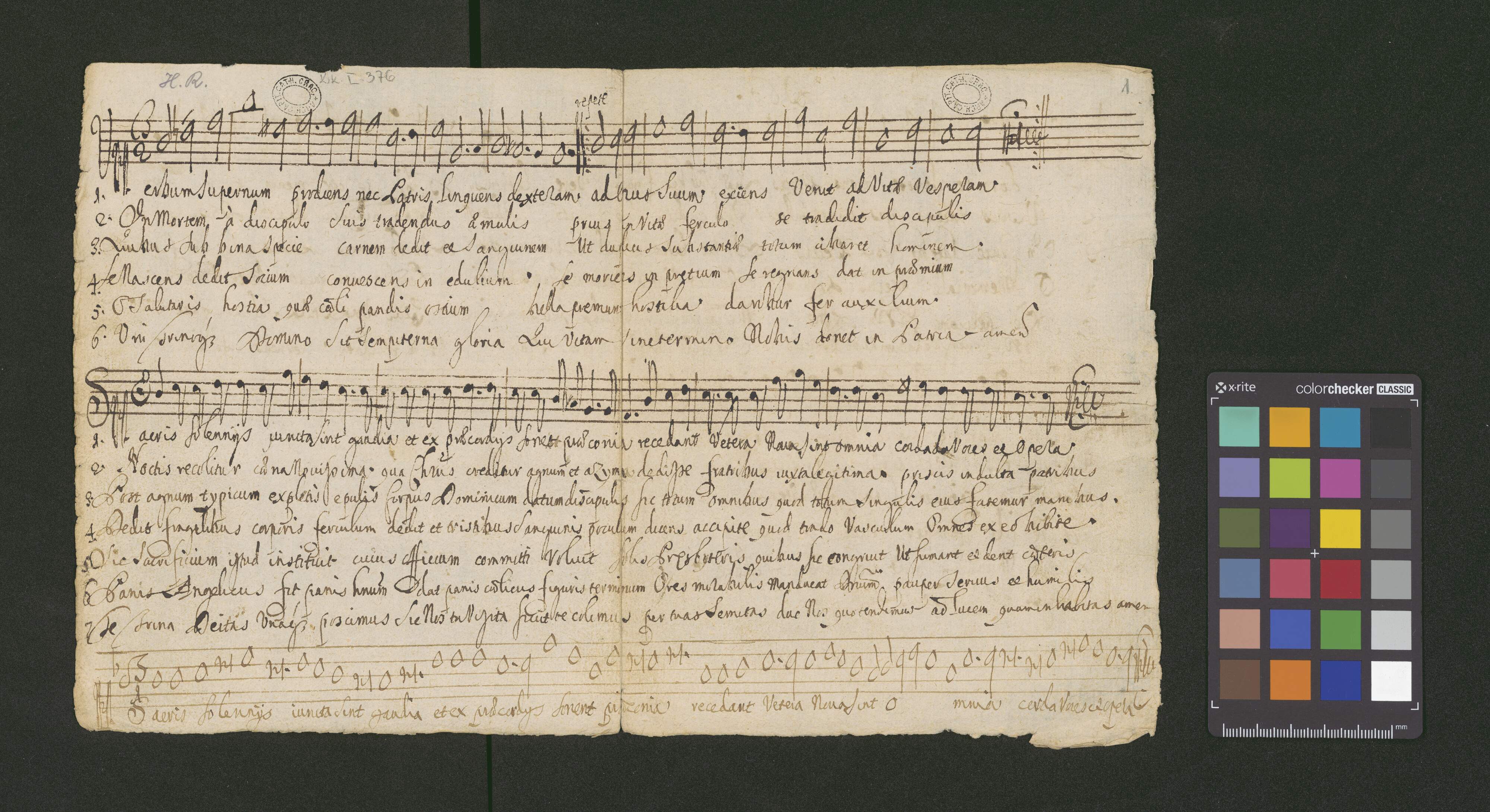 [page title:] # | De Corpore Xti Domini | HYMNI III | a 4 Voci | Canto alto. Tenore Basso. | Imus. Verbum Supernum prodiens | 2dus. Sacris solemnis | 3tius. Adoro Te devote | O. ad M. D. Gm