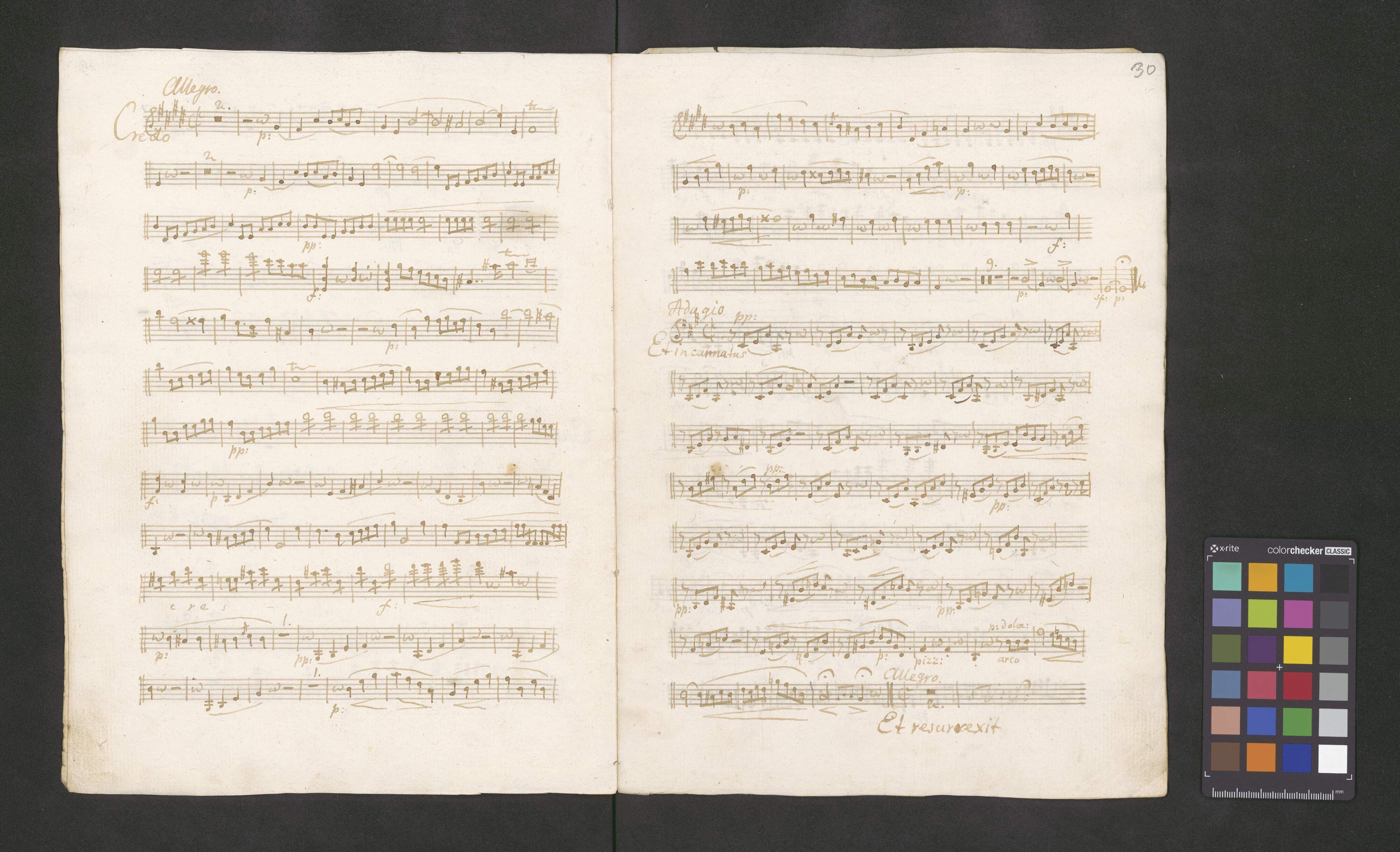 Missa | a | Canto Alto | Tenore Basso | Violi: | Primo | Secondo | Viola | Flauto Oboa | Clarinetti | Primo. obligatto | Secondo | Corni | Primo obligato | Secondo | Trombone. | Tromba Timpani | Contrabasso et Organo. | Anno 1820