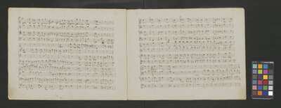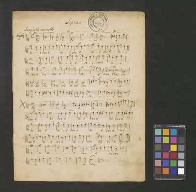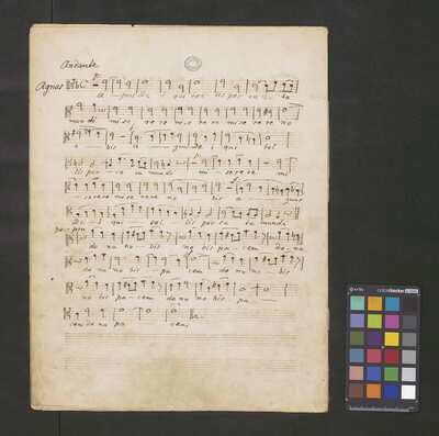 [pl-text: foliacja dopisana ołówkiem], [pl-text: oprócz foliacji w partyturze widoczne ślady paginacji], [pl-text: f. 10 v., 11 r., 14 r., 17 r., 20 r.; owalna pieczęć z czarnym tuszem „CATH. CRAC. * ARCH. CAPIT.”], [pl-text: f. 1 v., 11 v., 14 v., 17 v., 20 v.; pieczęć „ARCHIWUM I BIBLIOTEKA”, „Krakowskiej Kapituły Katedralnej”. Wewnątrz wpisana ołówkiem sygnatura „KK.I | 397”], [pl-text: f. 1 r. puste], [pl-text: poprawki wpisane ołówkiem], [pl-text: na pierwszej stronie partytury dopisane innym tuszem „Kyrie” i tempo. Nad nutami napis: „55 tak[t] z początku wypuścić | 45 od końca”.]