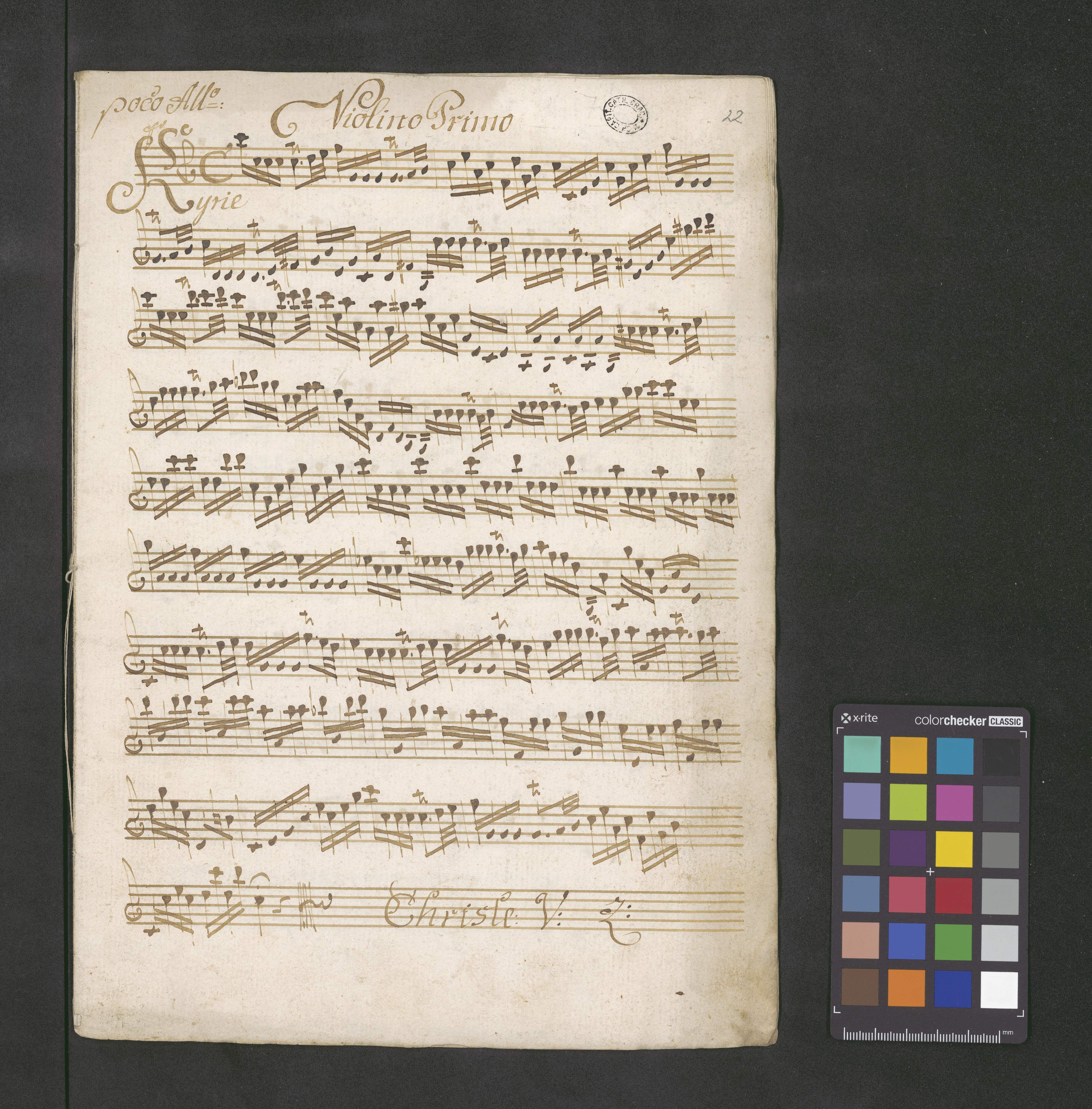 [title page:] Missa [with other hand:] "C.A.T.B. | Violinis 2bus | Obois 2bus | Clarinis 2bus | Organo et Timpano" | Authore Dem. Albrechtsberger. Ese. C. | [with other hand:] "Compavad Ao 1796 dielg Glois C Lochman Awafers awafers Musica Pnefen"