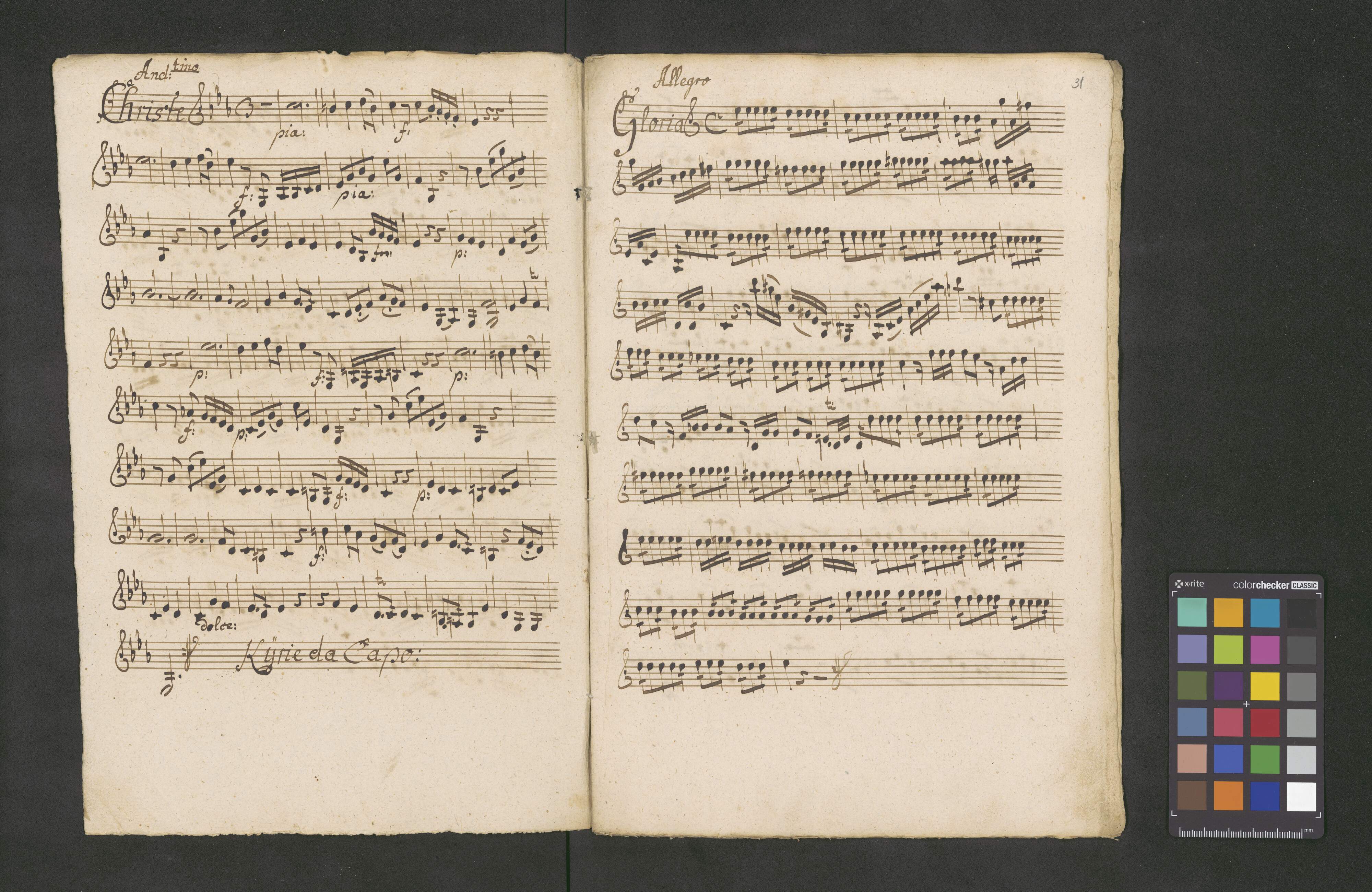 [title page:] Missa [with other hand:] "C.A.T.B. | Violinis 2bus | Obois 2bus | Clarinis 2bus | Organo et Timpano" | Authore Dem. Albrechtsberger. Ese. C. | [with other hand:] "Compavad Ao 1796 dielg Glois C Lochman Awafers awafers Musica Pnefen"