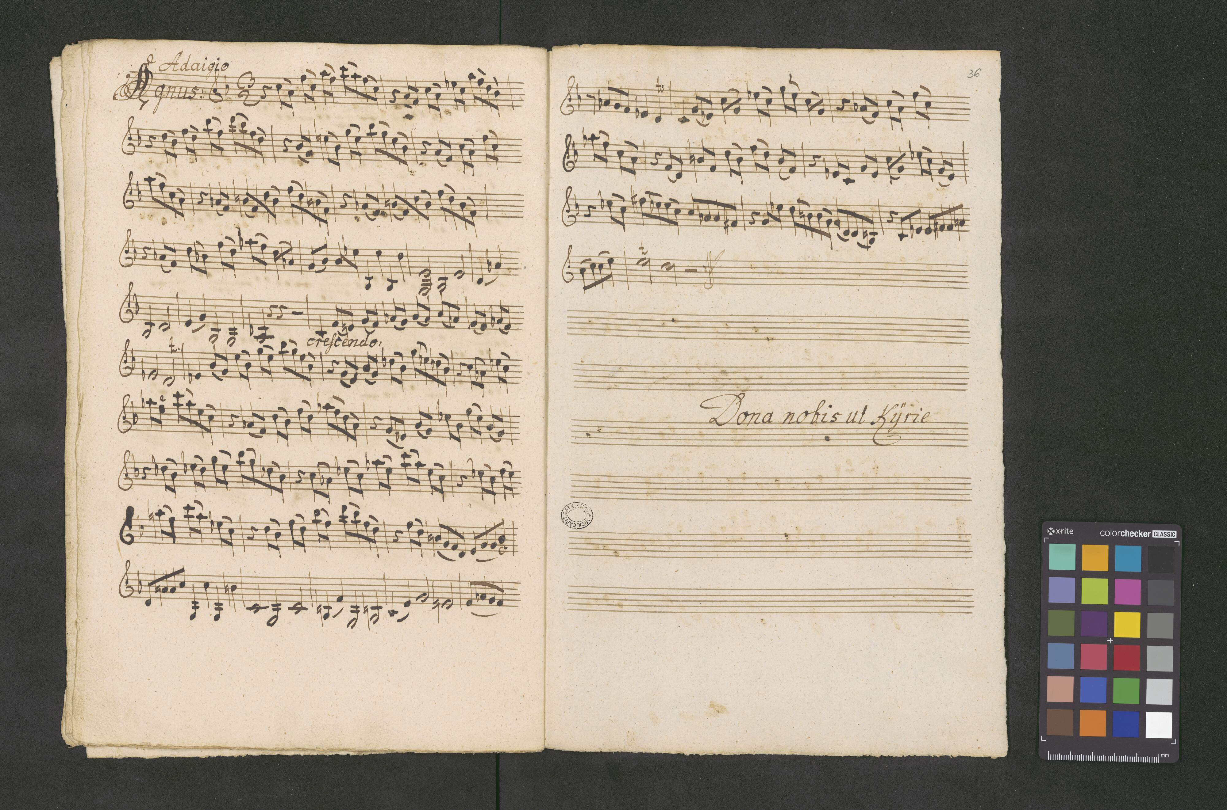 [title page:] Missa [with other hand:] "C.A.T.B. | Violinis 2bus | Obois 2bus | Clarinis 2bus | Organo et Timpano" | Authore Dem. Albrechtsberger. Ese. C. | [with other hand:] "Compavad Ao 1796 dielg Glois C Lochman Awafers awafers Musica Pnefen"