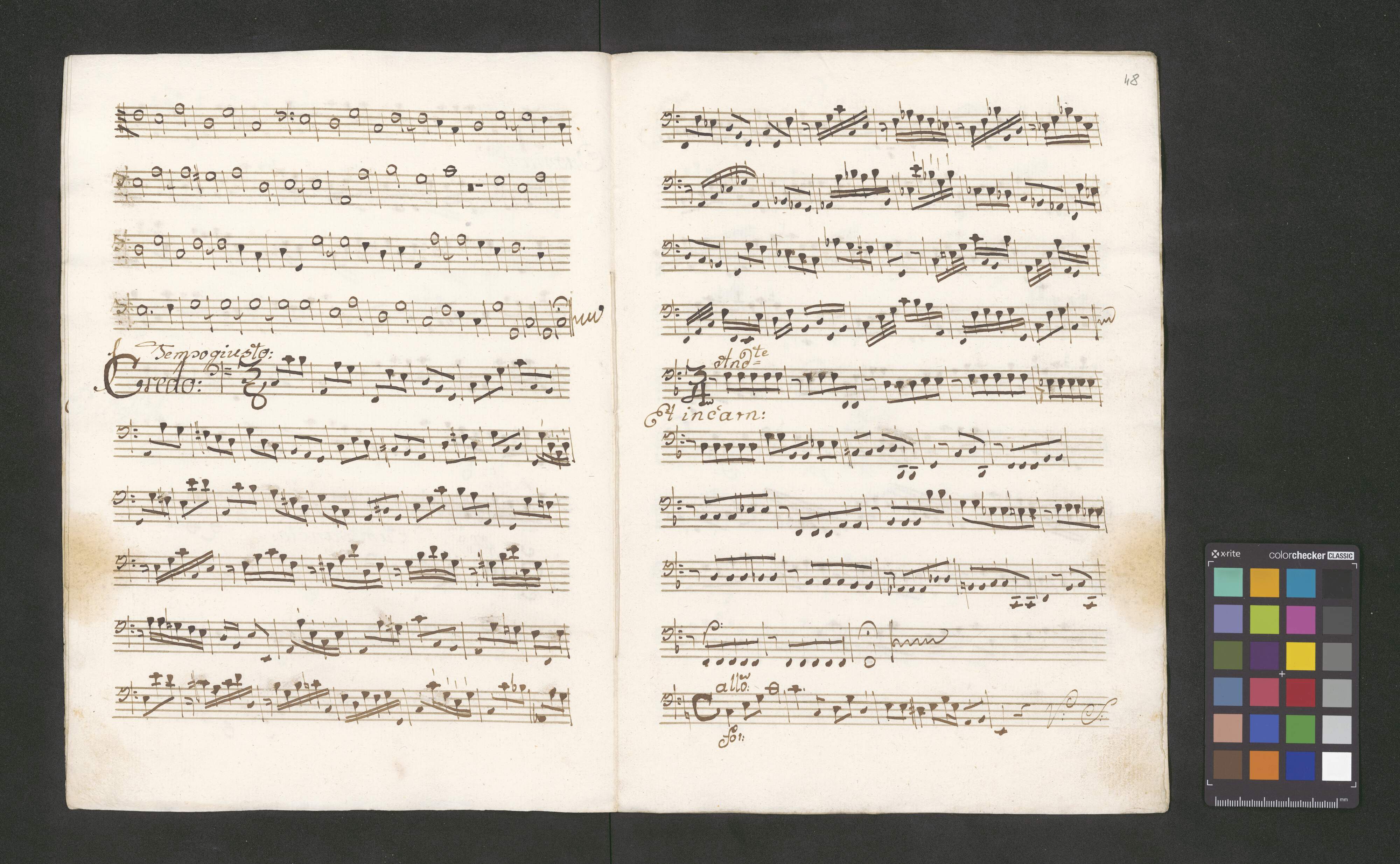 [title page:] Missa [with other hand:] "C.A.T.B. | Violinis 2bus | Obois 2bus | Clarinis 2bus | Organo et Timpano" | Authore Dem. Albrechtsberger. Ese. C. | [with other hand:] "Compavad Ao 1796 dielg Glois C Lochman Awafers awafers Musica Pnefen"