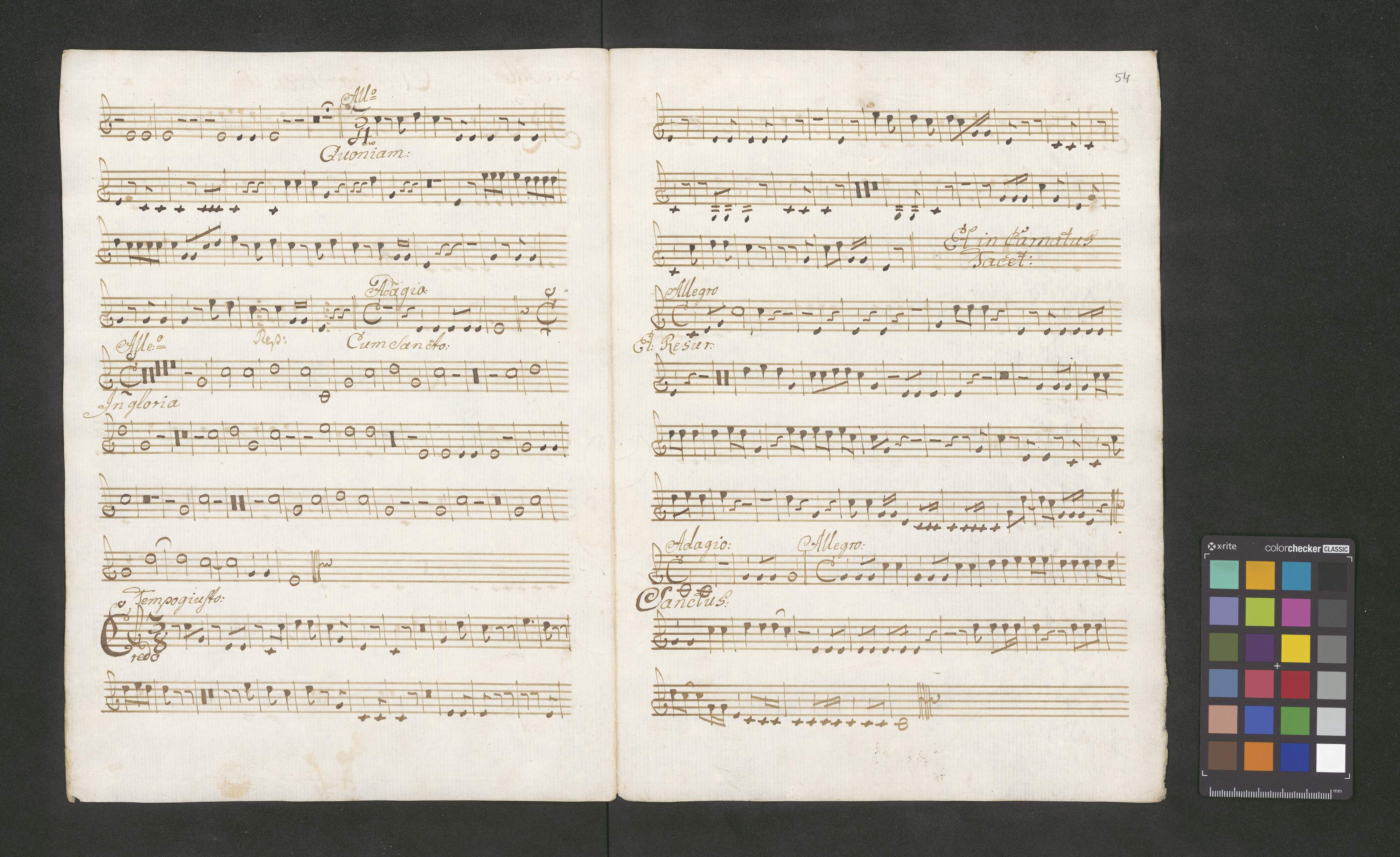 [title page:] Missa [with other hand:] "C.A.T.B. | Violinis 2bus | Obois 2bus | Clarinis 2bus | Organo et Timpano" | Authore Dem. Albrechtsberger. Ese. C. | [with other hand:] "Compavad Ao 1796 dielg Glois C Lochman Awafers awafers Musica Pnefen"