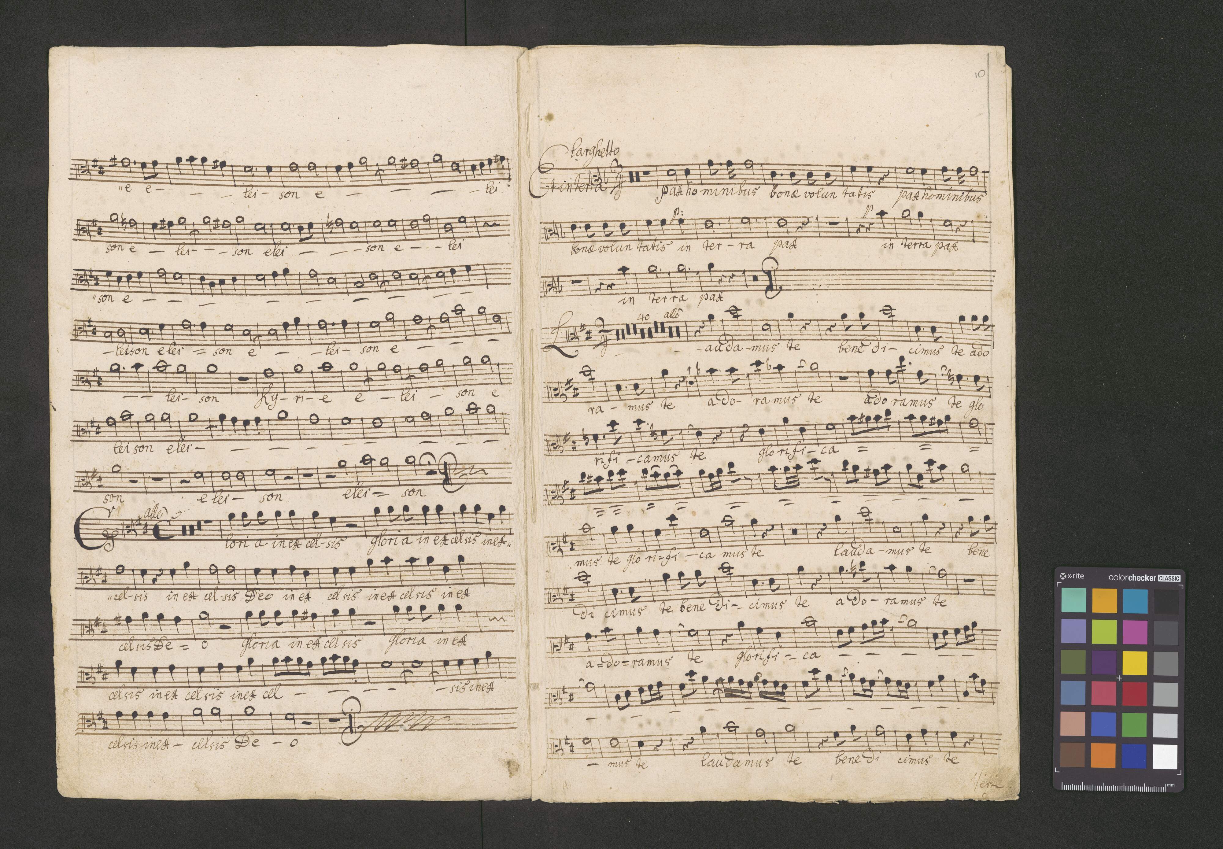 [from leavings of part from another piece:] Kyrie i Gloria | D: S: Bencini [with red crayon:] N. 2