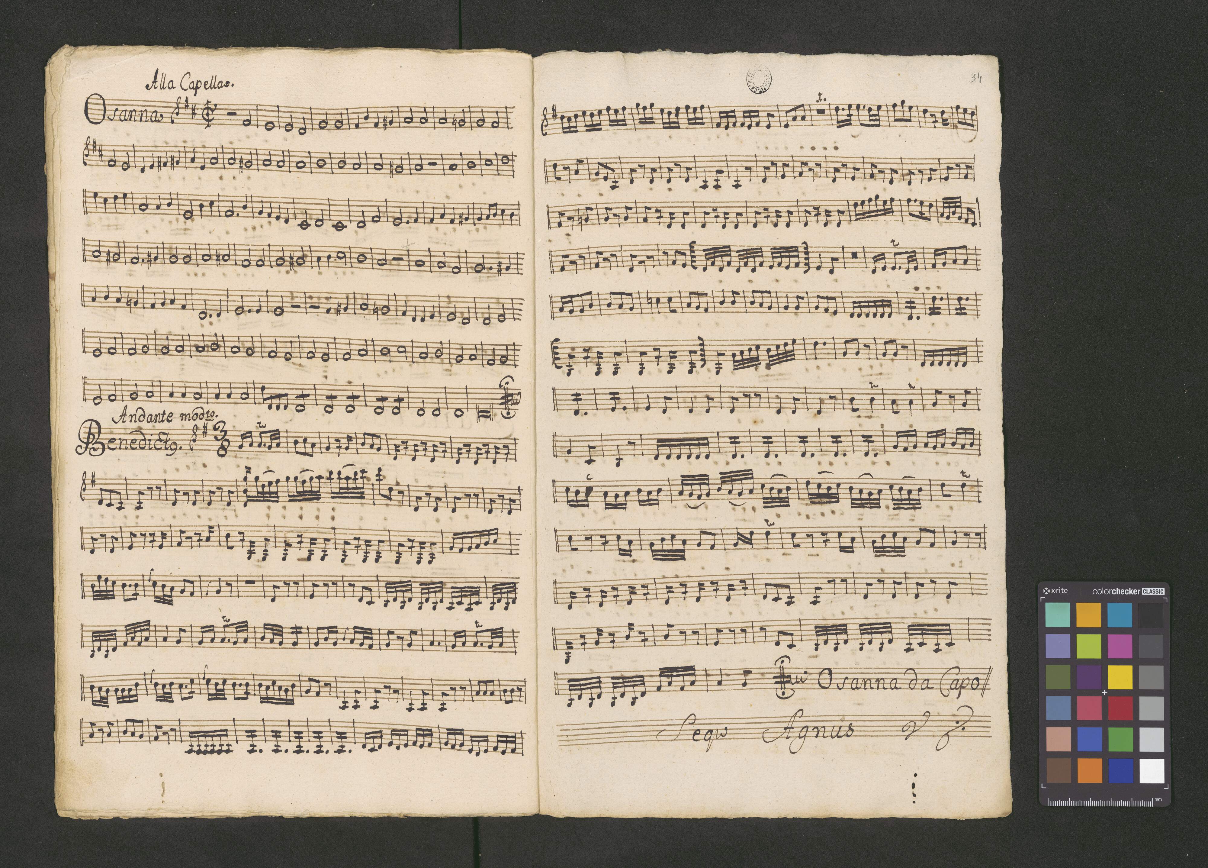 [title page:] Del Segniore Benda | Missa | a. | C. A. T. B. | Violinis 2bus | Flauto Concerto | Obois 2bus | Clarivis 2bus | Violoni et Organo | [with red crayon:] N. 3