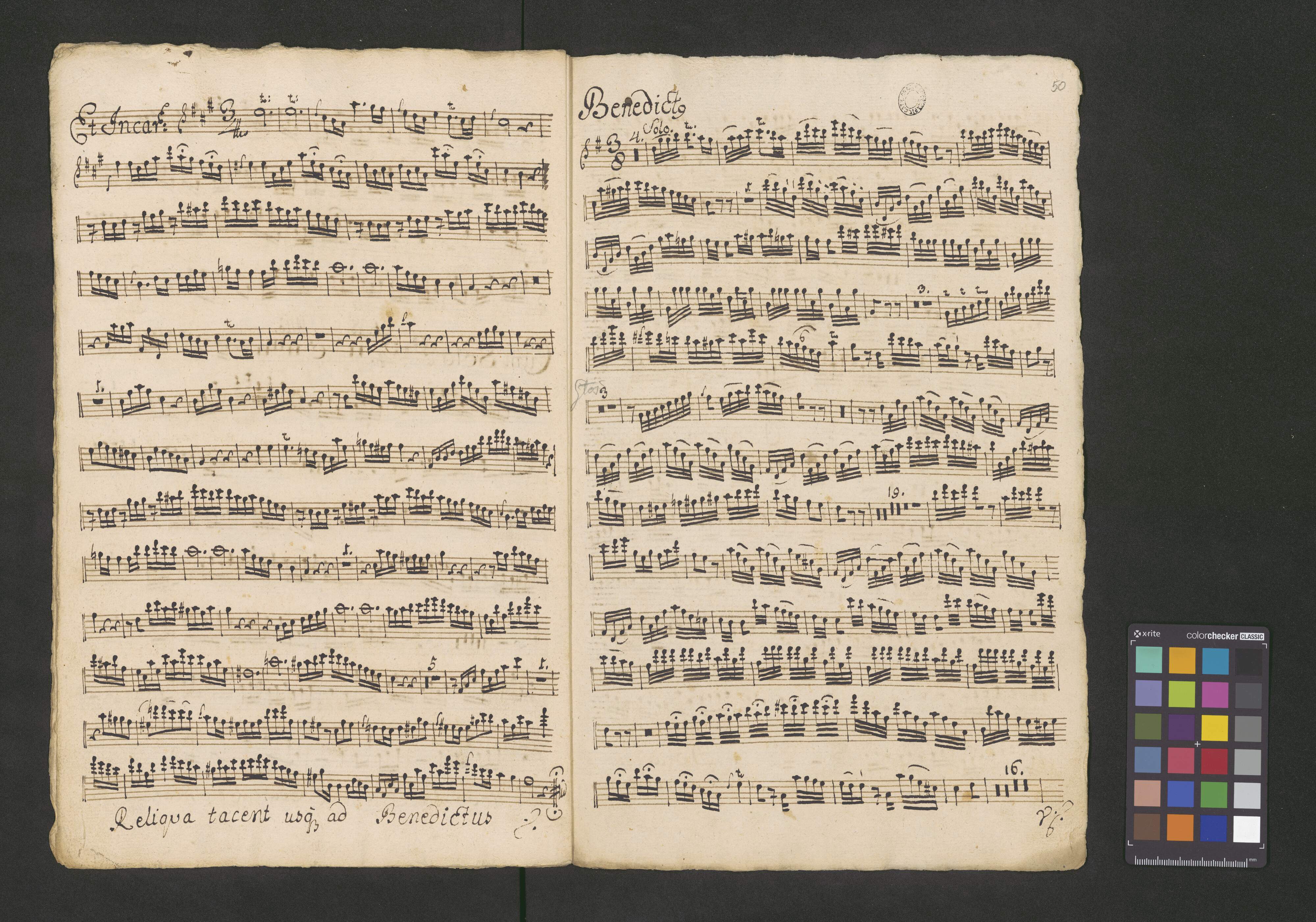 [title page:] Del Segniore Benda | Missa | a. | C. A. T. B. | Violinis 2bus | Flauto Concerto | Obois 2bus | Clarivis 2bus | Violoni et Organo | [with red crayon:] N. 3