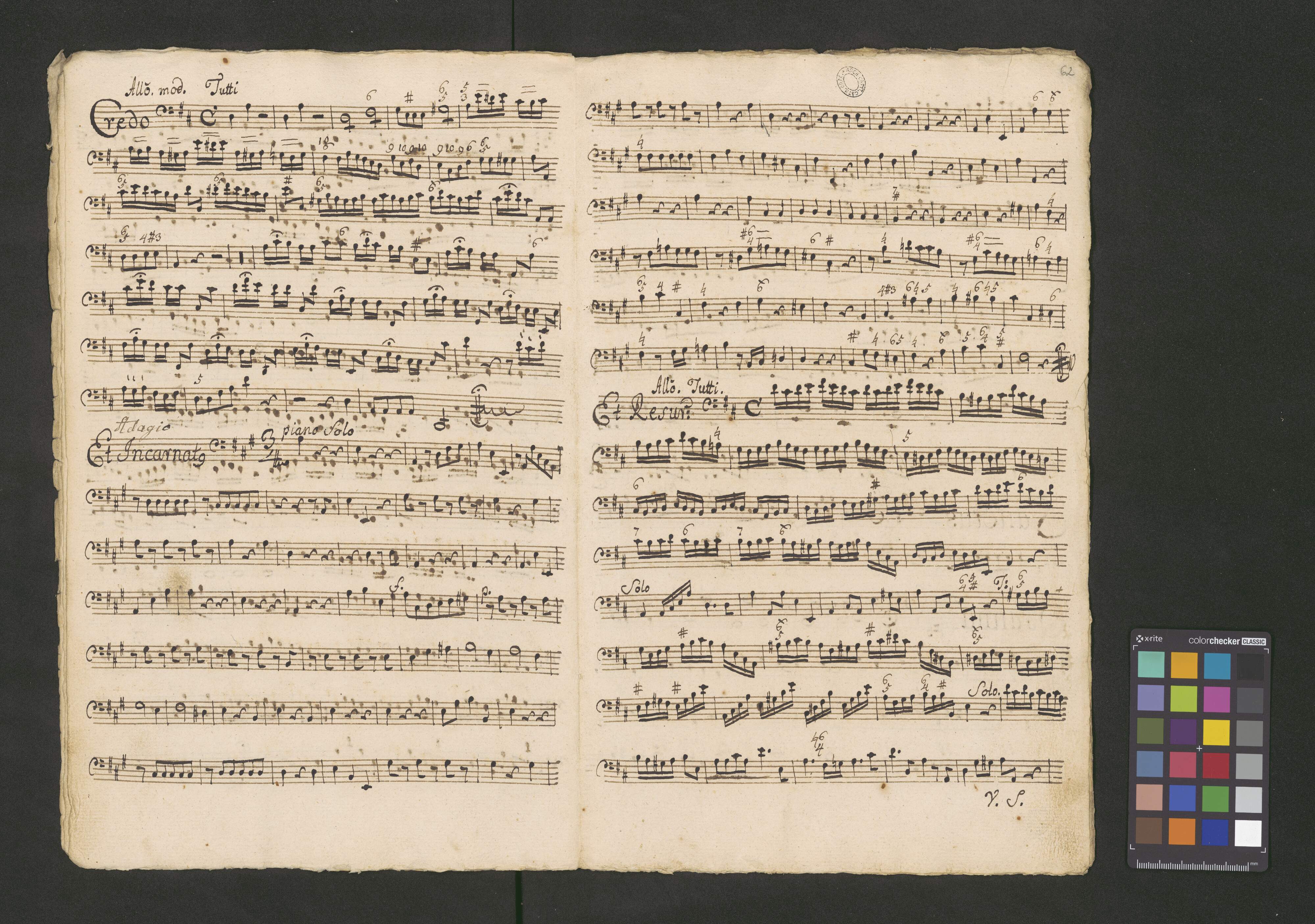 [title page:] Del Segniore Benda | Missa | a. | C. A. T. B. | Violinis 2bus | Flauto Concerto | Obois 2bus | Clarivis 2bus | Violoni et Organo | [with red crayon:] N. 3