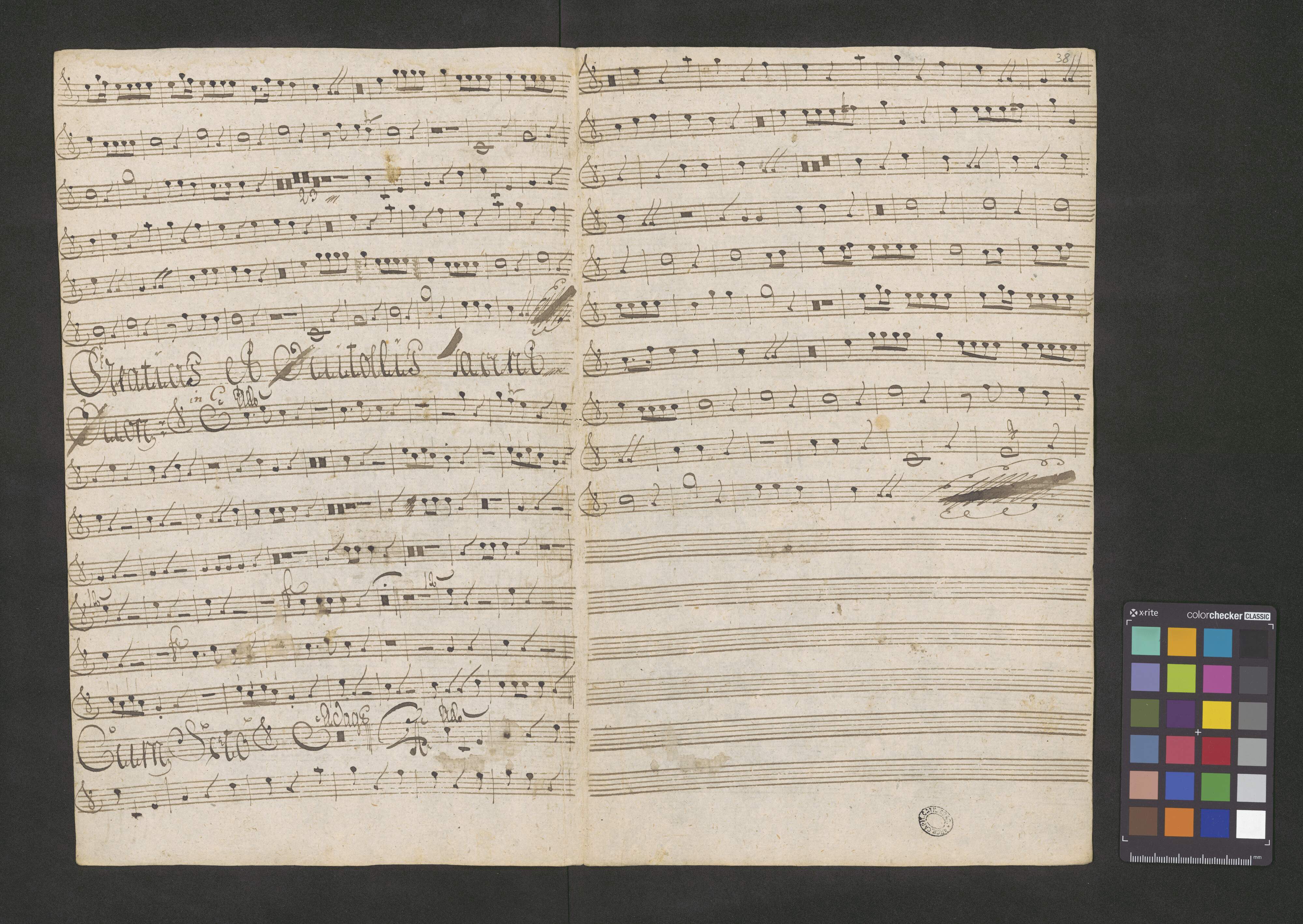 [title page:] Kyrie Gloria | di Pastorella | à | Canto Alto | Tenore Baſso. | Violini Due. | Clarini Due. D. | Violetta Neces. | con | Organo. | Sigl. Brixi Ex lebus [sic!] | Fel: Lang
