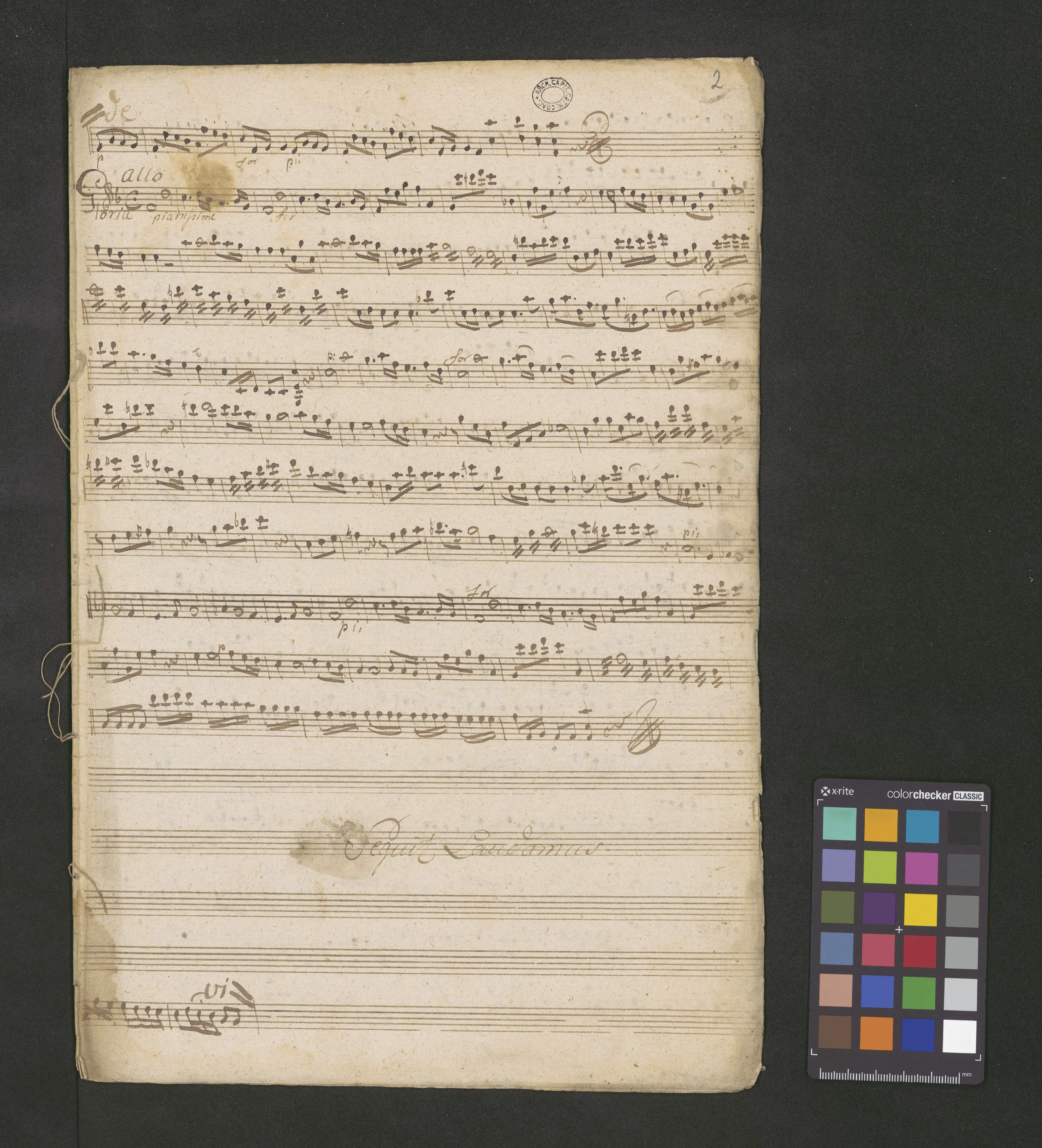 [title page:] MISSA in F.♭. | Canto. Alto. Tenore Baſso | Violinis Duobus 1|m|o duplici | Clarinis Duobus in F. | et | Organo. | Del Sign Xaverio Brizy | Ex Rebus Michailis Rychel[ſki?]