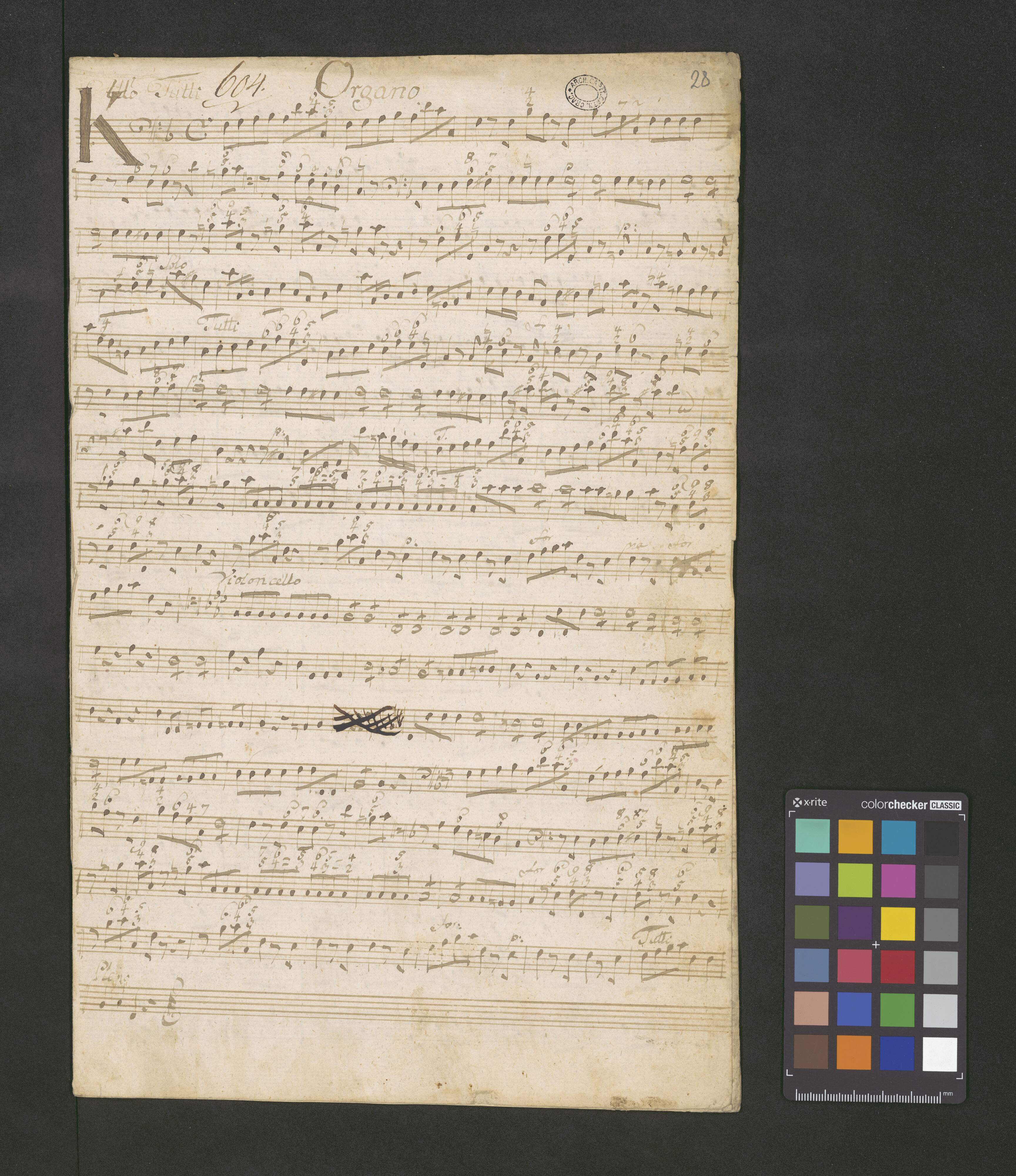 [title page:] MISSA in F.♭. | Canto. Alto. Tenore Baſso | Violinis Duobus 1|m|o duplici | Clarinis Duobus in F. | et | Organo. | Del Sign Xaverio Brizy | Ex Rebus Michailis Rychel[ſki?]