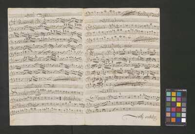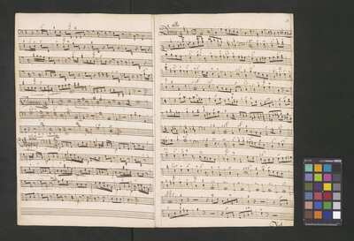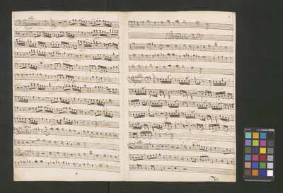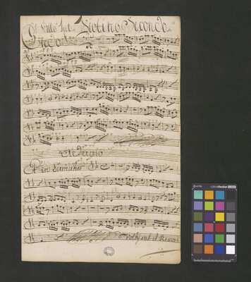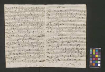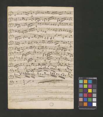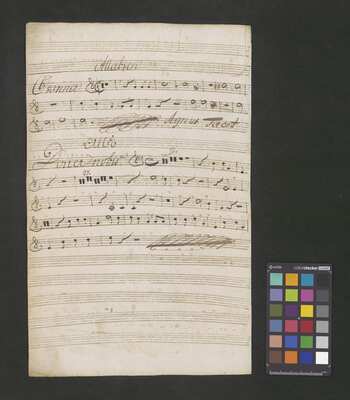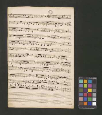 [pl-text: Rękopis zawiera opracowania części Credo, Sanctus i Agnus Dei.], [pl-text: Na wybranych folio owalna pieczęć: „CATH. CRAC. * ARCH. CAPIT.”], [pl-text: Na drugiej stronie okładki i f. 1r okrągła pieczęć: "ARCHIWUM i BIBLIOTEKA | Krakowskiej Kapituły Katedralnej".], [pl-text: Na trzeciej stronie okładki wklejka z fragmentu k. tyt. innej kompozycji.], [pl-text: Foliacja dopisana ołówkiem.]