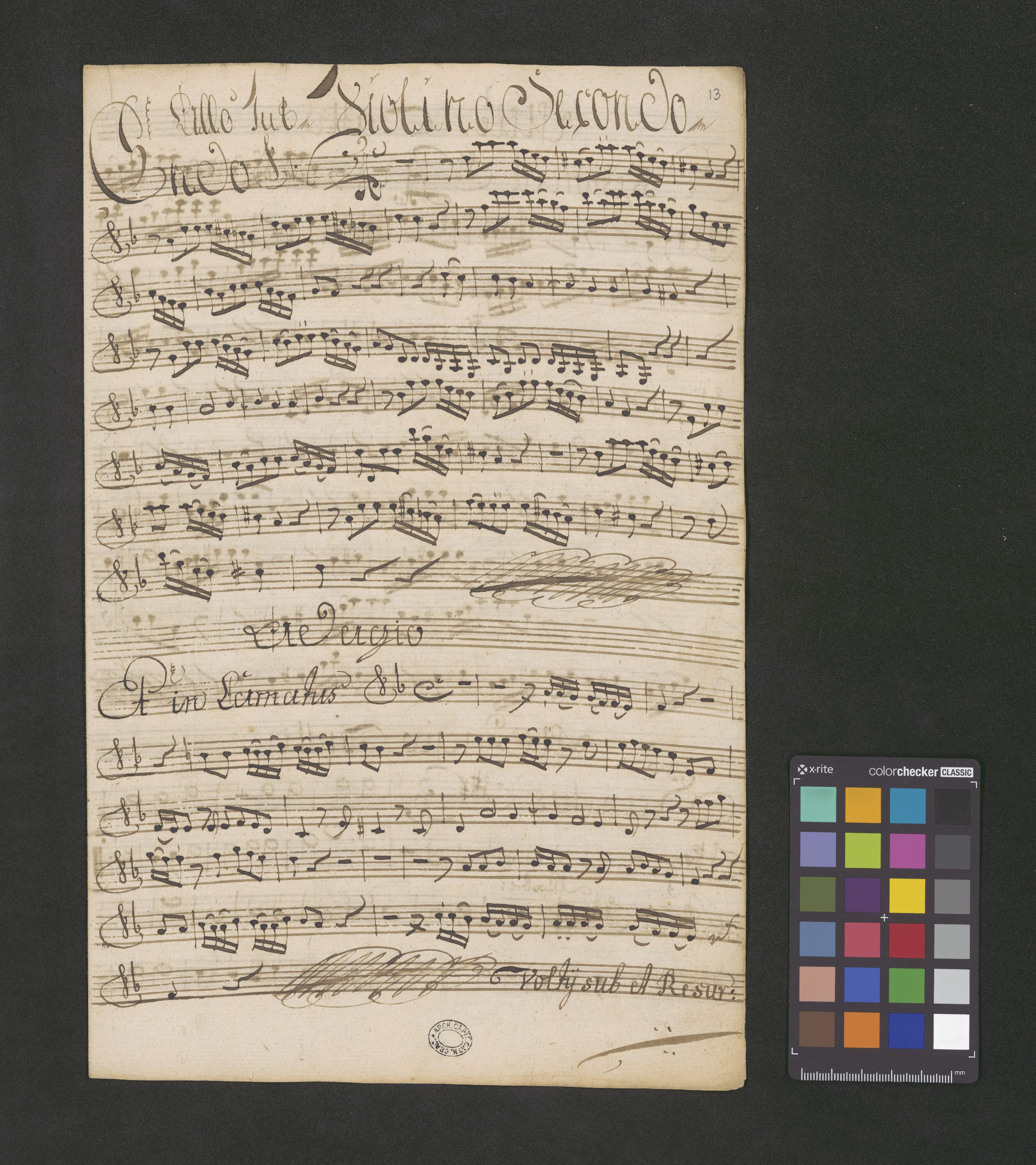 [title page:] Solenne | Credo Pulchrumque | ex | Canto Alto. | Tenore Baſso. | Violini Due | [added later in lighter ink] Flauto et Oboe due] | Cornu Due F | Violetta Neces: | con | Organo. | Del Sigl Brixi | Ex lebus [sic!] | Fel: Lang